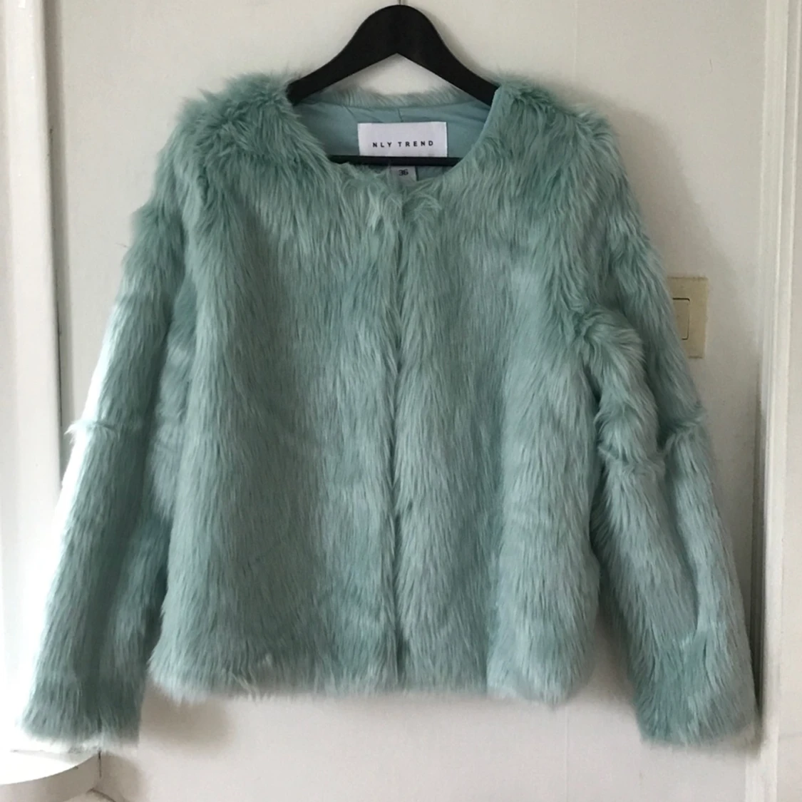 Pälsjacka från Nelly, mintgrönblå, använd två gånger, stängs med hylsor