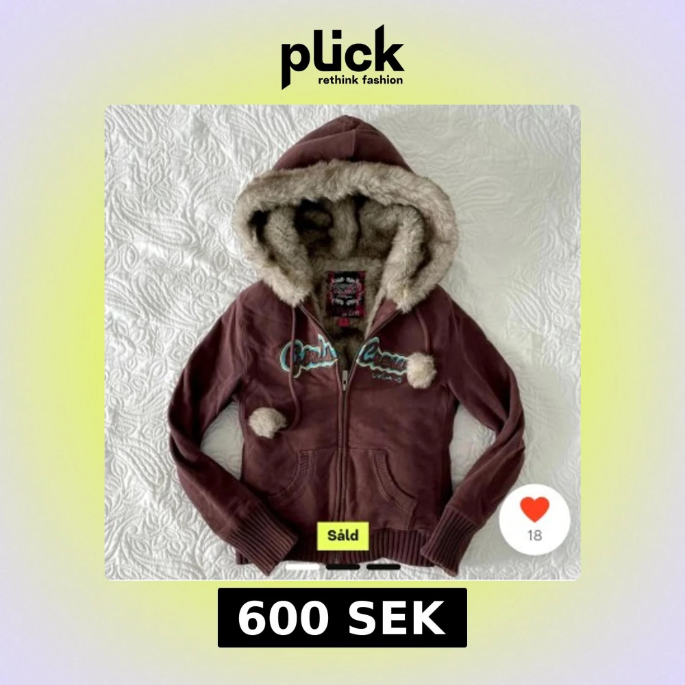 Mysig brun hoodie från Gale Crew med pälsfodrad luva och dragkedja. Den har en broderad logga i blått och vitt på framsidan samt dekorativa tofsar på snörena. Perfekt för kyliga dagar. Inga deffekter. Säljer då armarna är för korta för mig