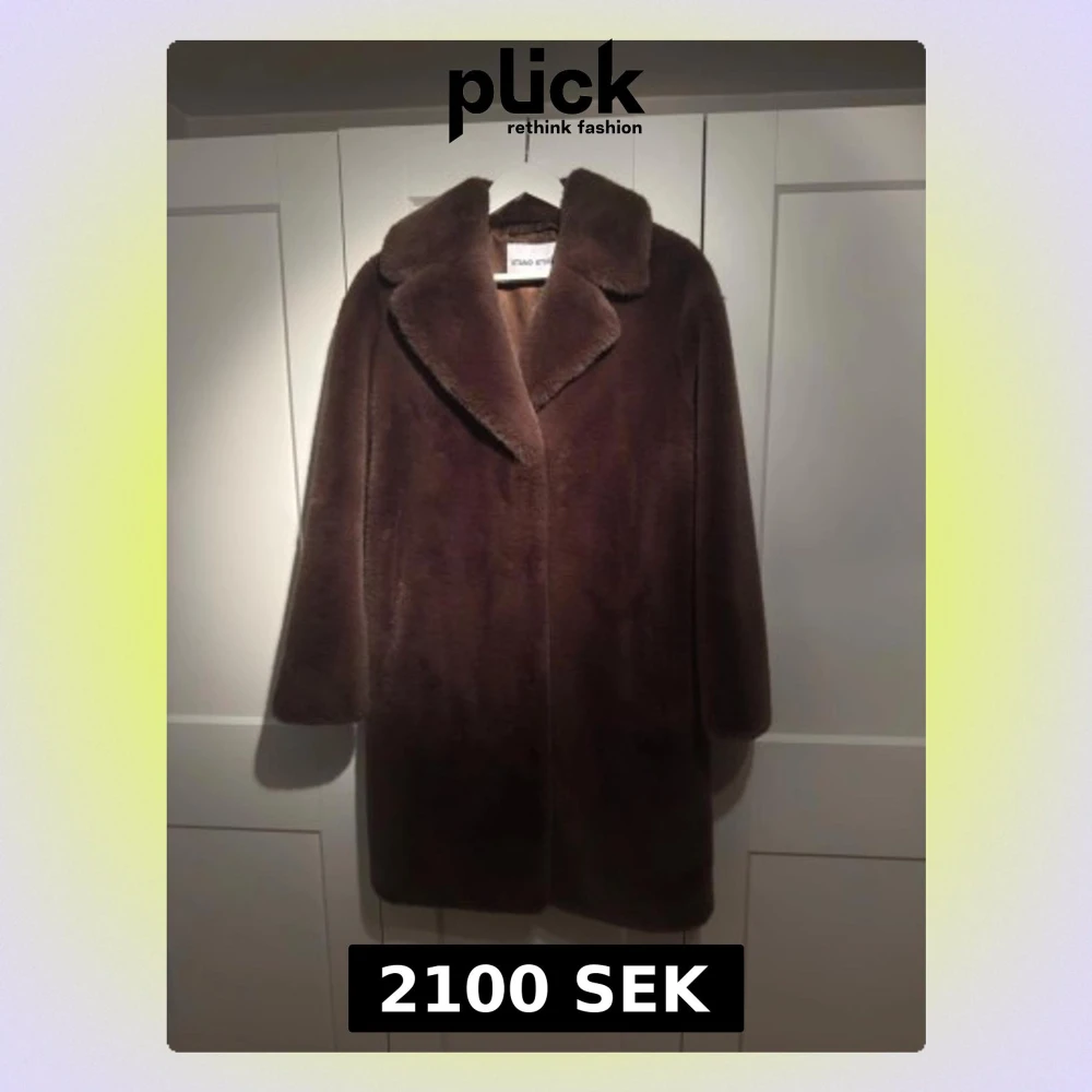 Säljer en fluffig och oversized brun pälsjacka från Stand Studio. Jackan har bred krage, raka ärmar och stängs framtill. Perfekt för kalla dagar när du vill vara både varm och snygg. Fodrad insida för extra komfort och storleken är 36 Dam. Endast använd ett par gånger, nypris 4900kr. Har även ett par uggs i matchande färg se sista bild i strl. 39 helt nya Dam, som kan köpas med till paketpris 2 900kr.