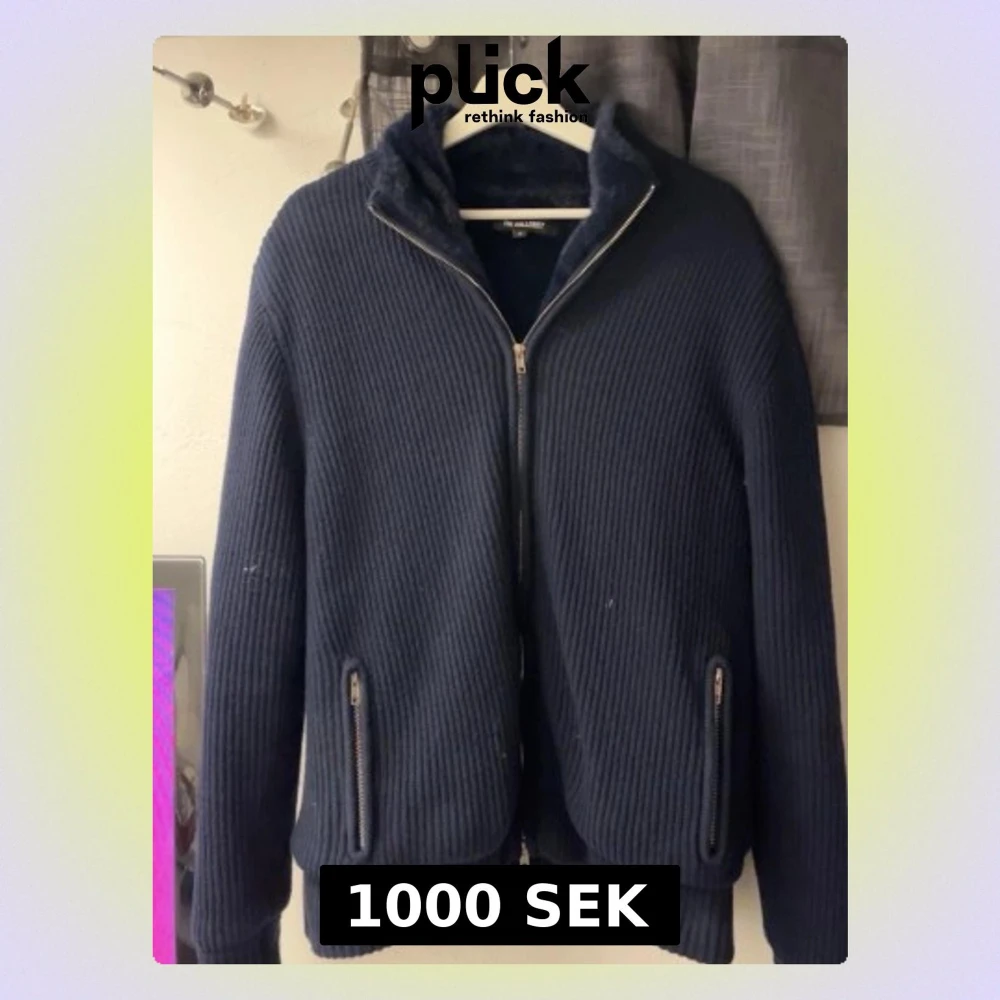 Mysig mörkblå teddyjacka från The Gallerist i storlek S. Jackan har ribbad yta, fluffigt foder, två fickor med dragkedja och hel dragkedja framtill. Perfekt för kyliga dagar och har en clean, modern look.