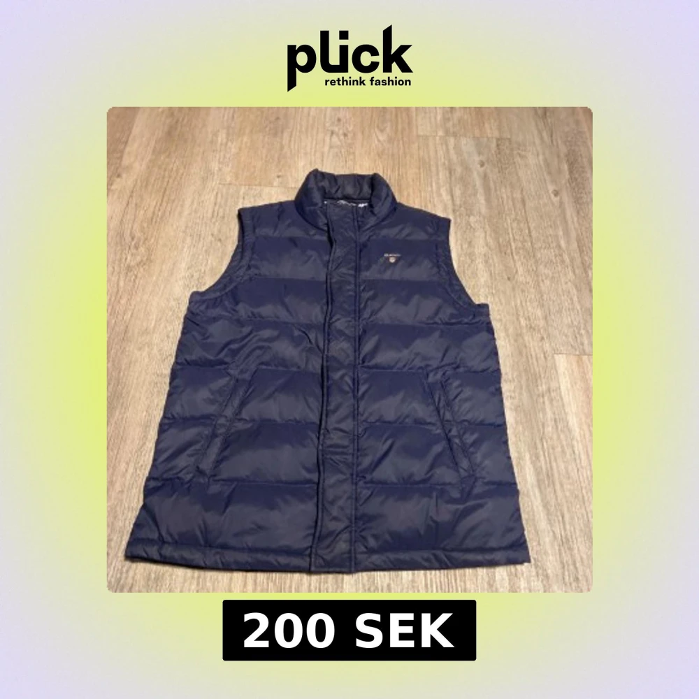 Snygg marinblå dunväst från Gant med quiltad design och ståkrage. Västen har två snedställda fickor framtill och dragkedja. Insidan är fodrad med blåvitrandigt tyg för en fräsch look. Perfekt för lager-på-lager under kyliga dagar.