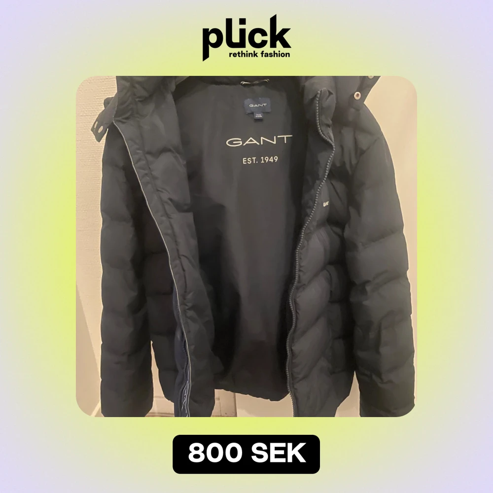 Säljer en snygg och varm svart dunjacka från GANT. Jackan har en huva och dragkedja framtill. Perfekt för kalla vinterdagar. Den är i mycket bra skick och har en stilren design med GANT-loggan på bröstet och ryggen. Storlek 170 men passar även för de som har storlek S.