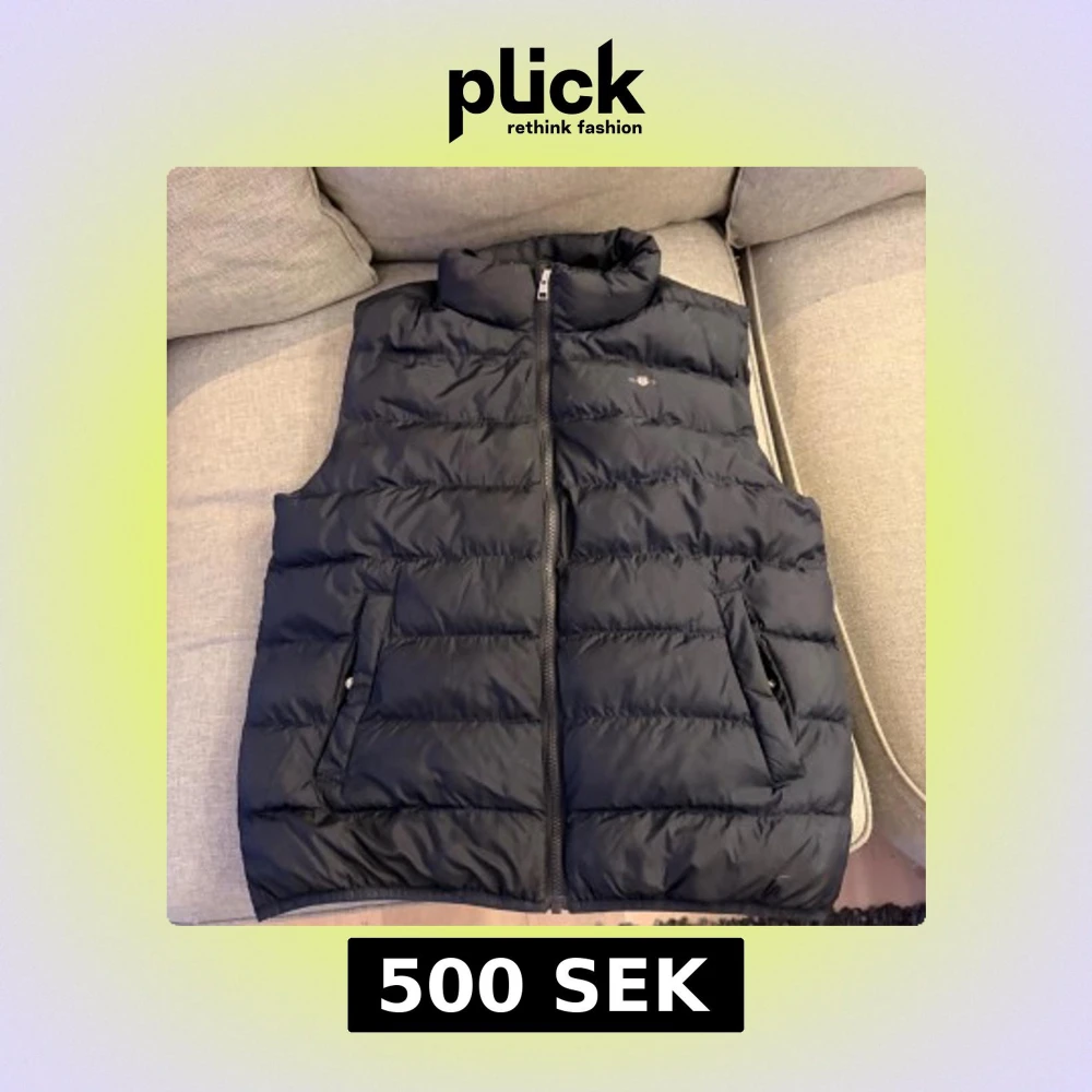 Snygg svart dunväst från GANT med quiltad design och hög krage. Västen har två praktiska fickor med dragkedja och en diskret logga på bröstet. Perfekt att slänga över en hoodie när det är kyligt ute. Stängs med dragkedja framtill.