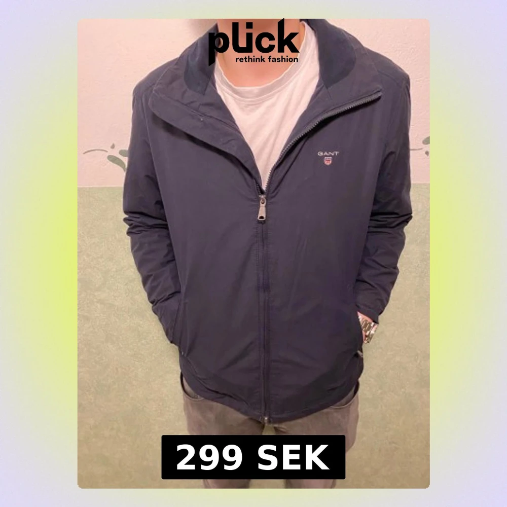Snygg mörkblå vindjacka från GANT med klassisk ståkrage och diskret logga på bröstet. Jackan har dragkedja framtill, två sidofickor och är tillverkad i ett lätt och slitstarkt syntetmaterial. Perfekt för dig som gillar stilren och enkel design.