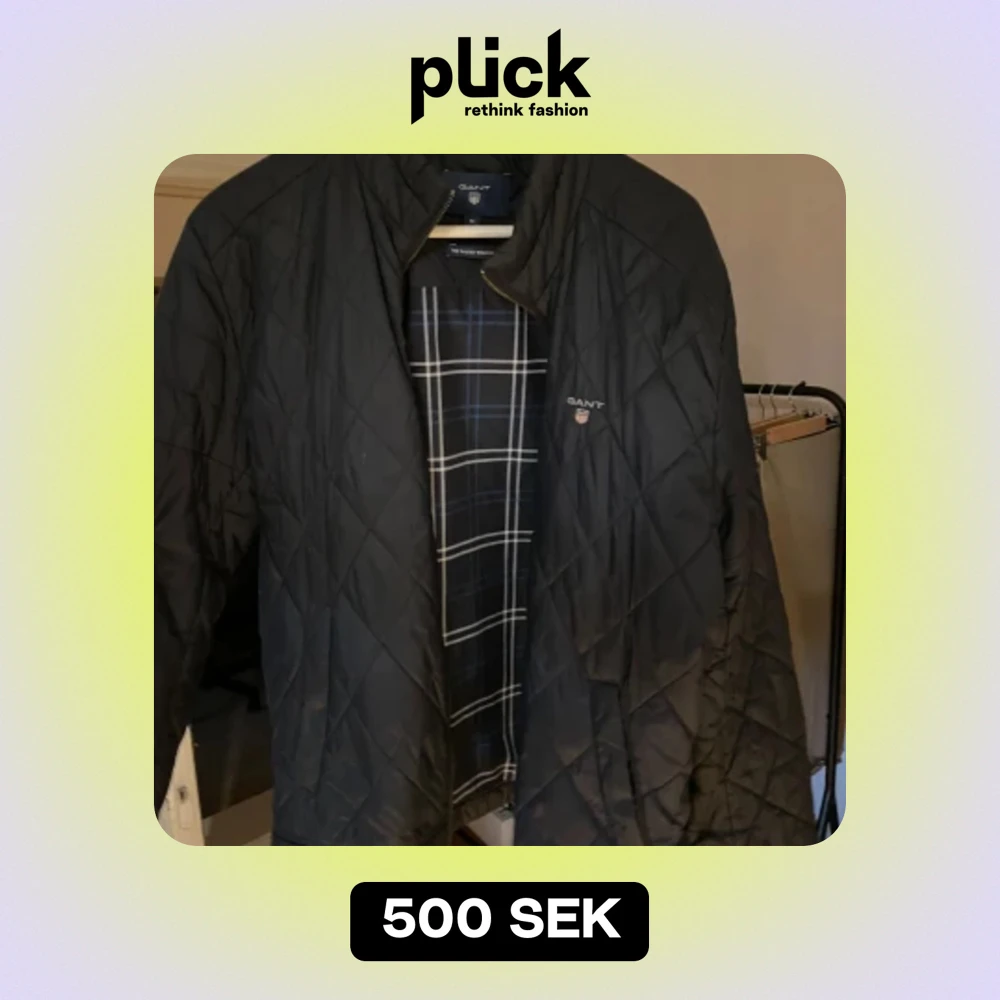 Säljer en snygg svart quiltad jacka från GANT i storlek M. Jackan har en dragkedja framtill och ett stilrent rutigt mönster på insidan. Perfekt för höst och vår, med en klassisk look som funkar till det mesta. Passar både till vardags och lite finare tillfällen.