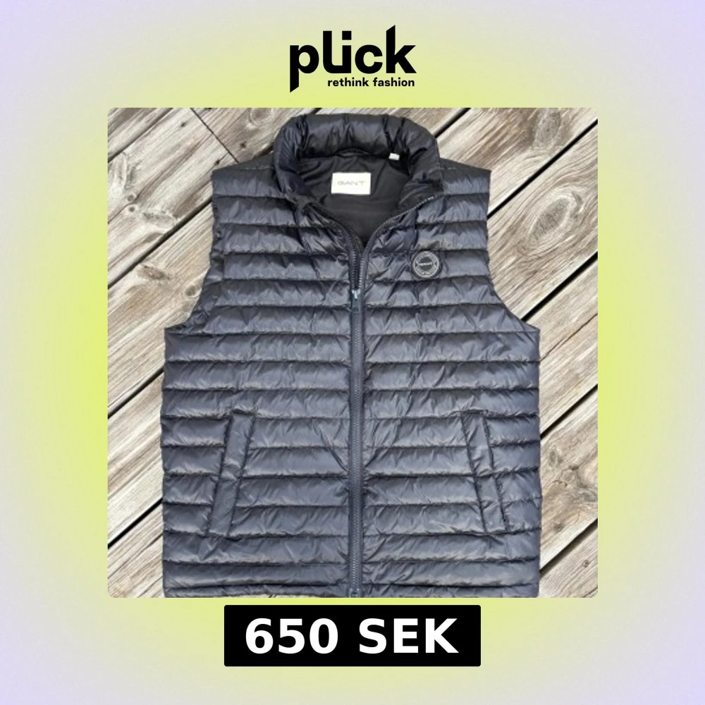 Svart lättviktsdunväst från GANT i storlek 146/152 (11-12 år). Västen är lätt och varm. Dragkedja och fickor med tryckknapp i sidorna för praktisk förvaring. Inköpt på Kids Brand Store för 1 789 kr i september förra året. Mycket fint skick. Västen är nytvättad med tvättmedel avsett för dun samt utan sköljmedel.