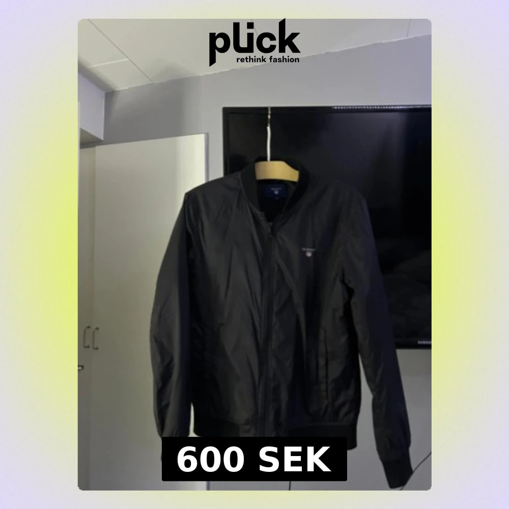 Svart bomberjacka från GANT i storlek S. Jackan har ribbade muddar, dragkedja framtill och klassisk rund krage. Insidan har tryck med 'New Haven 49 GANT Connecticut'. Materialet är glansigt och känns lätt, perfekt för dig som gillar stilren och sportig look.