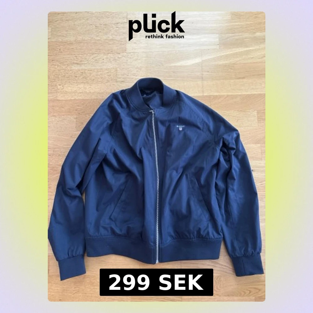 Snygg marinblå bomberjacka från GANT med klassisk ribbad krage och muddar. Jackan har dragkedja framtill, två snedställda fickor och diskret GANT-logga broderad på bröstet. Perfekt för dig som gillar stilren och enkel design.