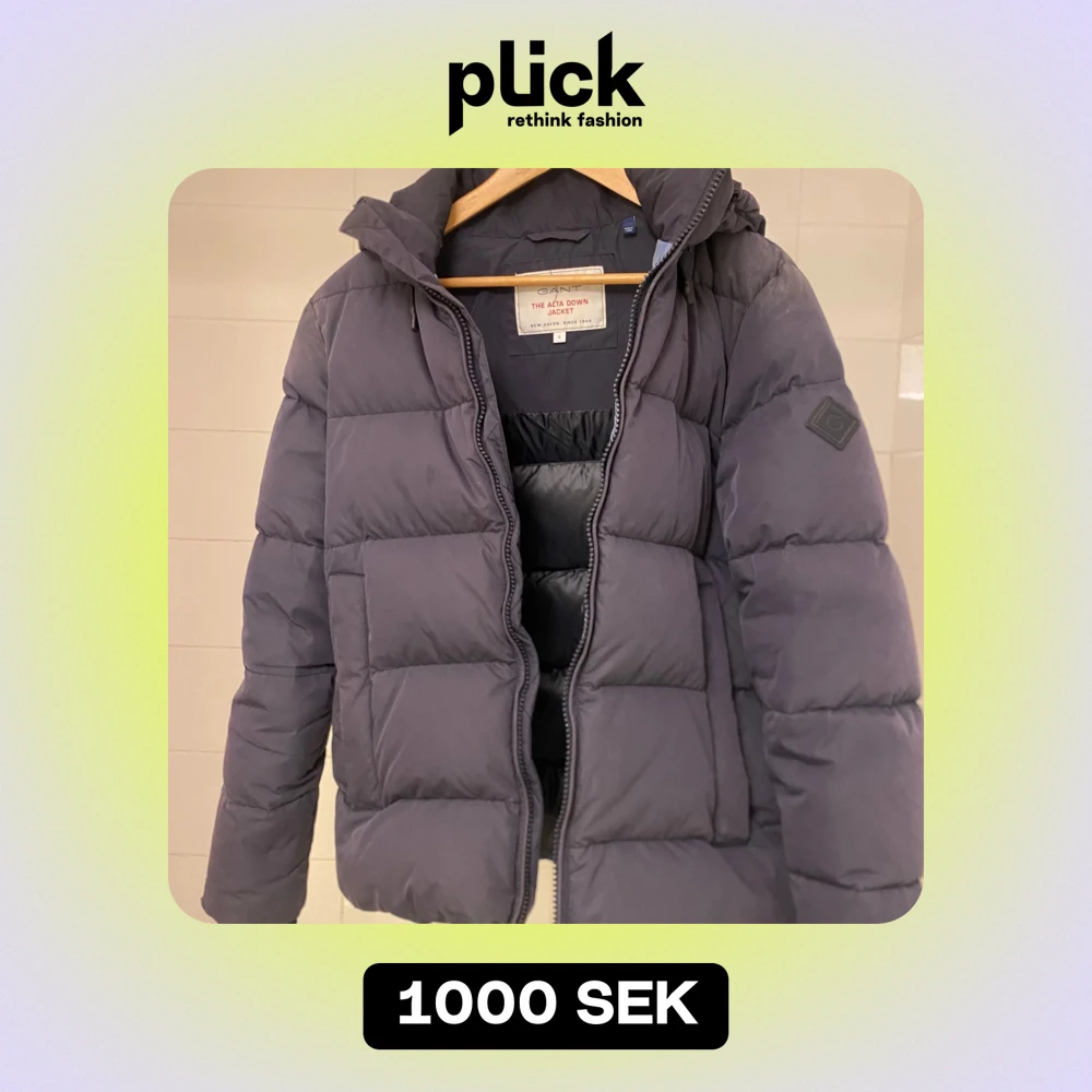 Säljer varm mörkblå dunjacka från GANT. Jackan har en dragkedja framtill och en avtagbar luva. Den är i använt skick och passar för höst och vinter. Inköpt för 4000:-, pris kan förhandlas
