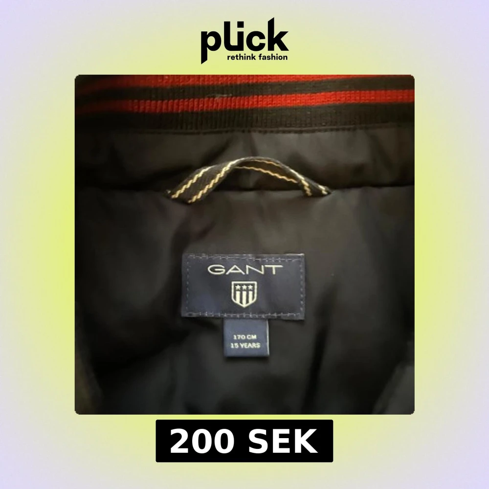 Säljer en mörkblå bomberjacka från GANT med broderad logga på bröstet och röd brodyr på ärmen. Jackan har dragkedja framtill, ribbade muddar och två fickor med dragkedja. Snygga röda detaljer på krage och ärmslut.