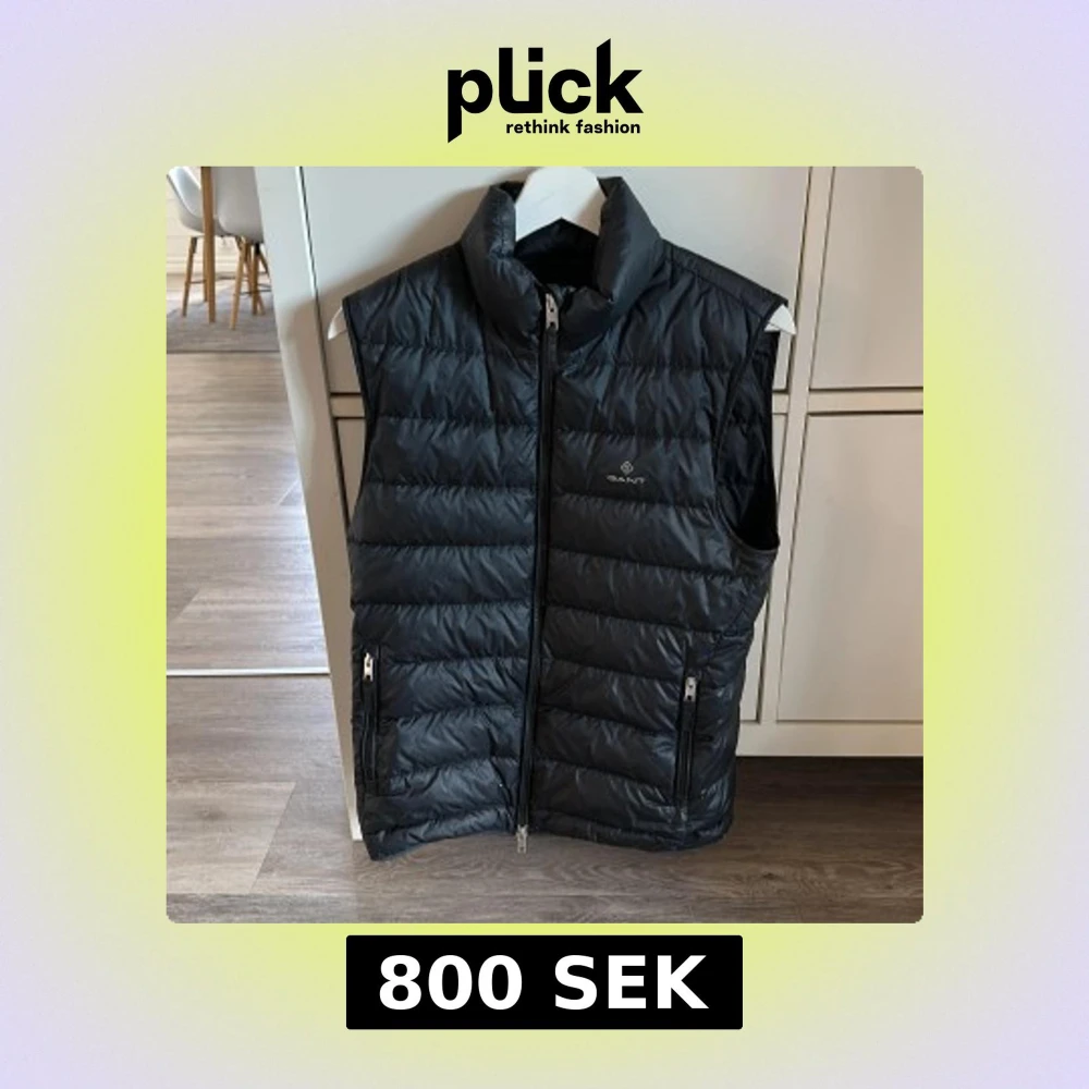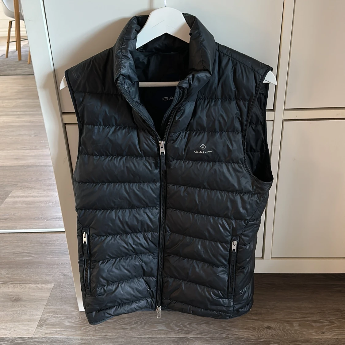 Säljer en svart dunväst från Gant med hög krage och två fickor med dragkedja. Västen har quiltad design och stängs med dragkedja framtill. Perfekt för lager-på-lager under kyliga dagar. Västen är i bra skick och endast använd i ett år. nypris 2000kr Storlek XS