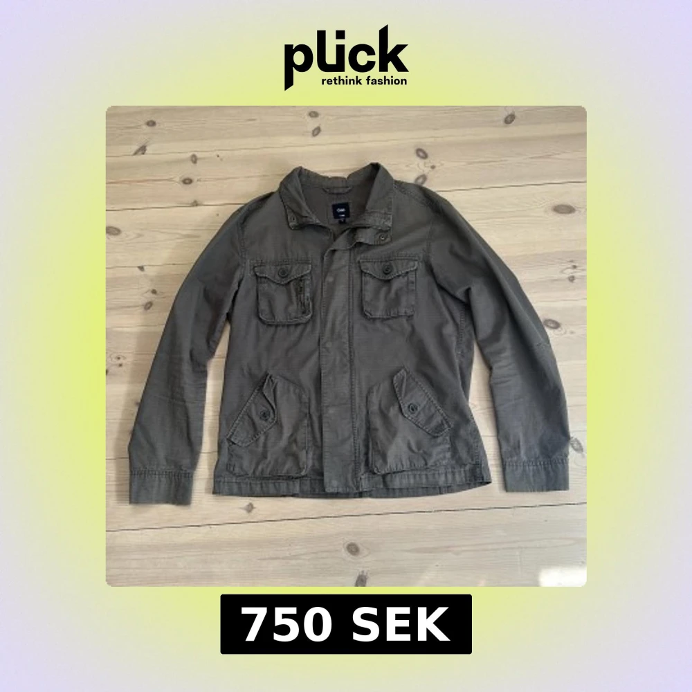 Stilren vårjacka från GAP. Snygg grå/grön färg. Har lite små tecken på användning men inga större defekter. Pris går att diskutera