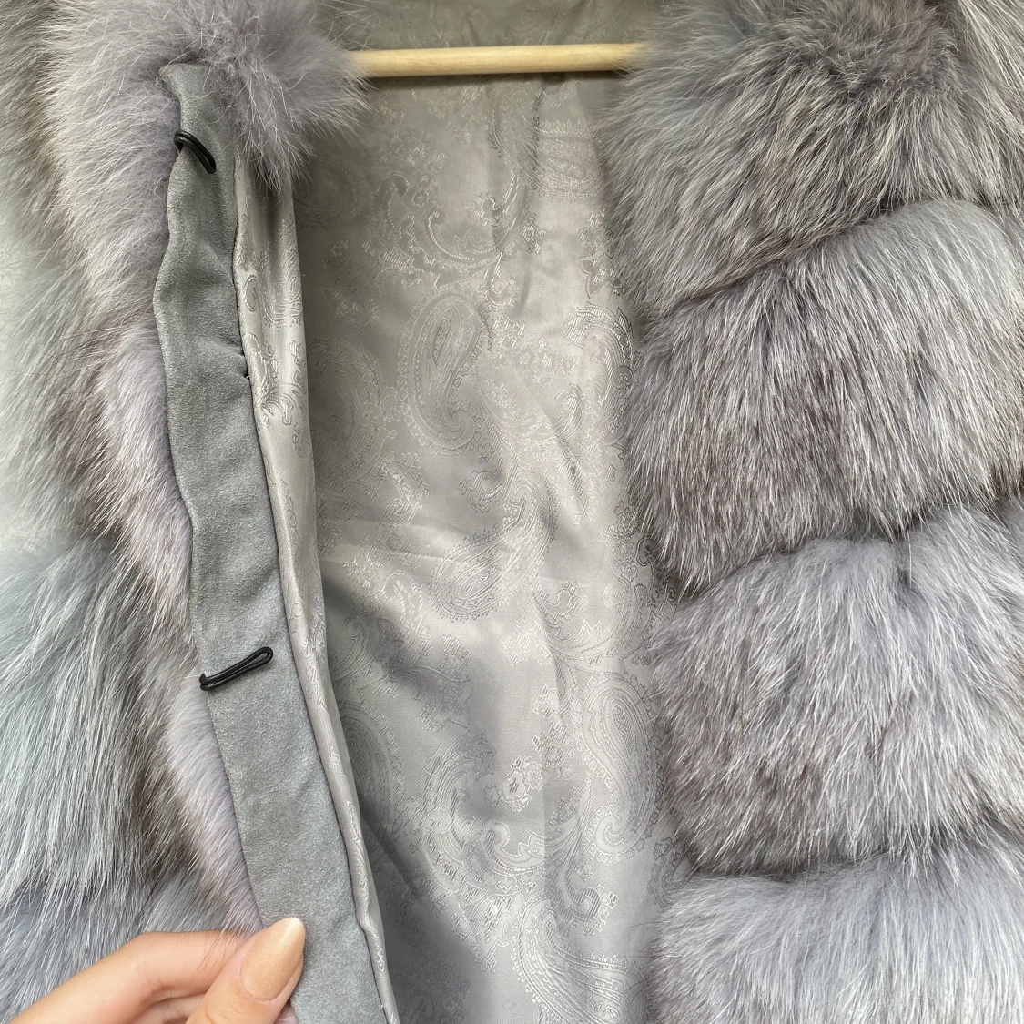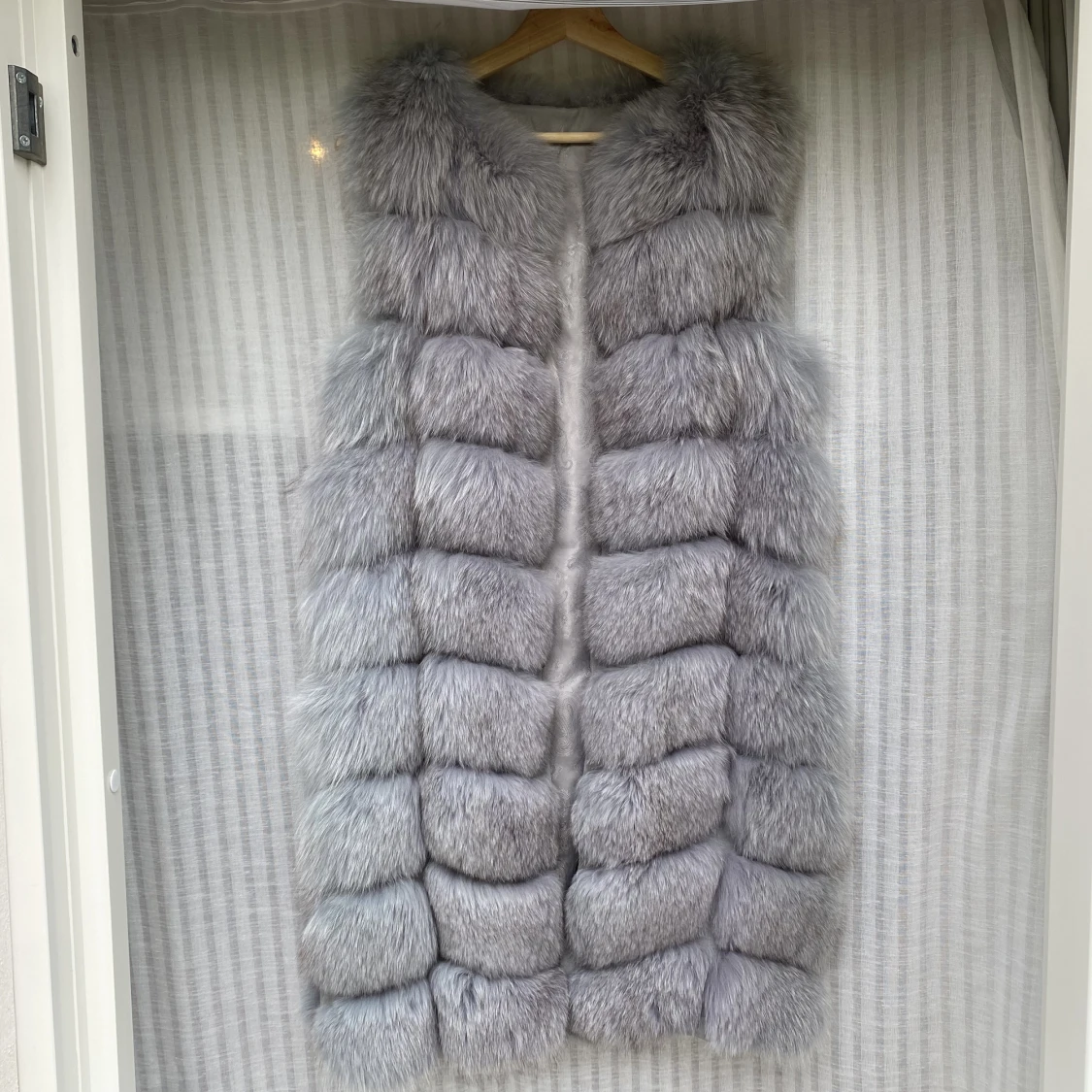 Ljusgrå pälsväst i mycket bra skick. Köpt i butik Garoff i Stockholm, nypris 3200kr. Hela pälsen är av äkta kaninpäls.