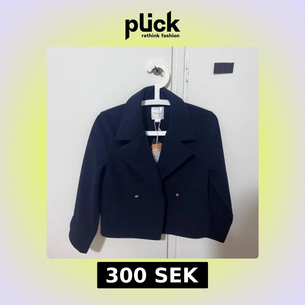 Oanvänd marinblå höstkappa från Gina tricot.