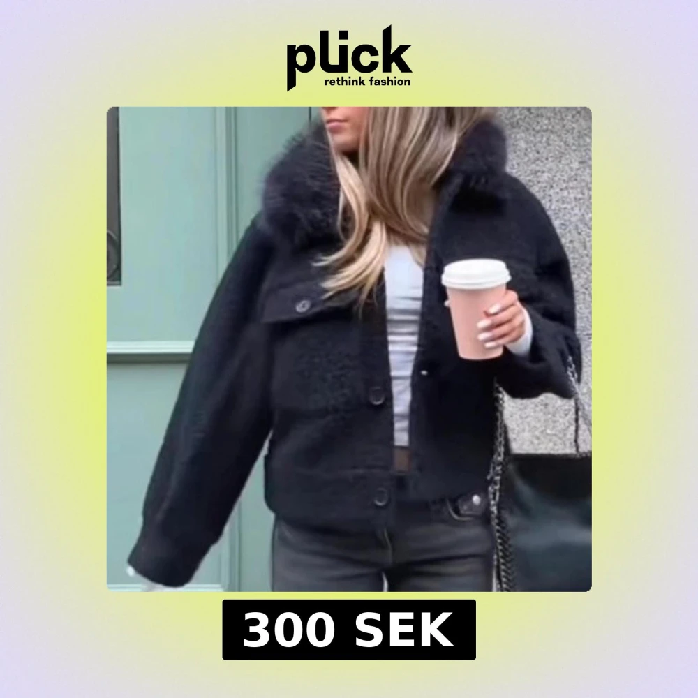 Snygg svart teddyjacka med stor fluffig krage och knappar framtill. ärmar. Perfekt för dig som vill ha en trendig och mysig look i höst och vinter. Storlek 170 passar xs/s