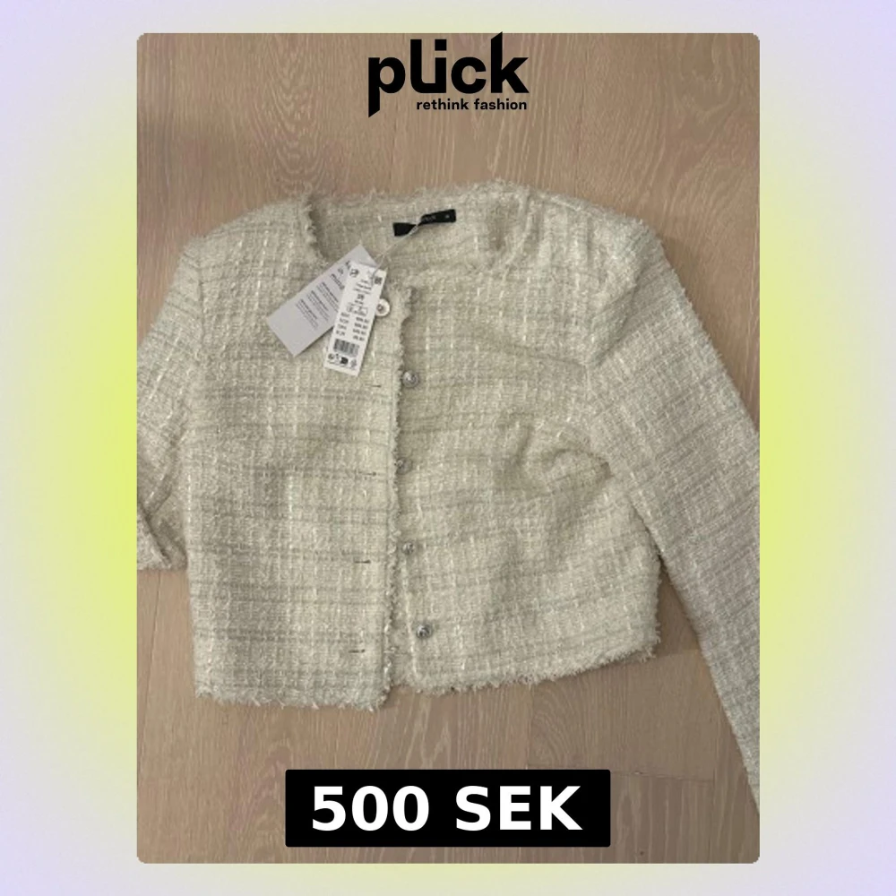 Säljer en snygg vit tweedjacka från Gina Tricot i storlek 36. Jackan har en croppad passform, rund halsringning och silvriga knappar framtill. Materialet är strukturerat och ger en exklusiv känsla. Perfekt för dig som vill ha en trendig och stilren look. Helt ny, pris kan diskuteras