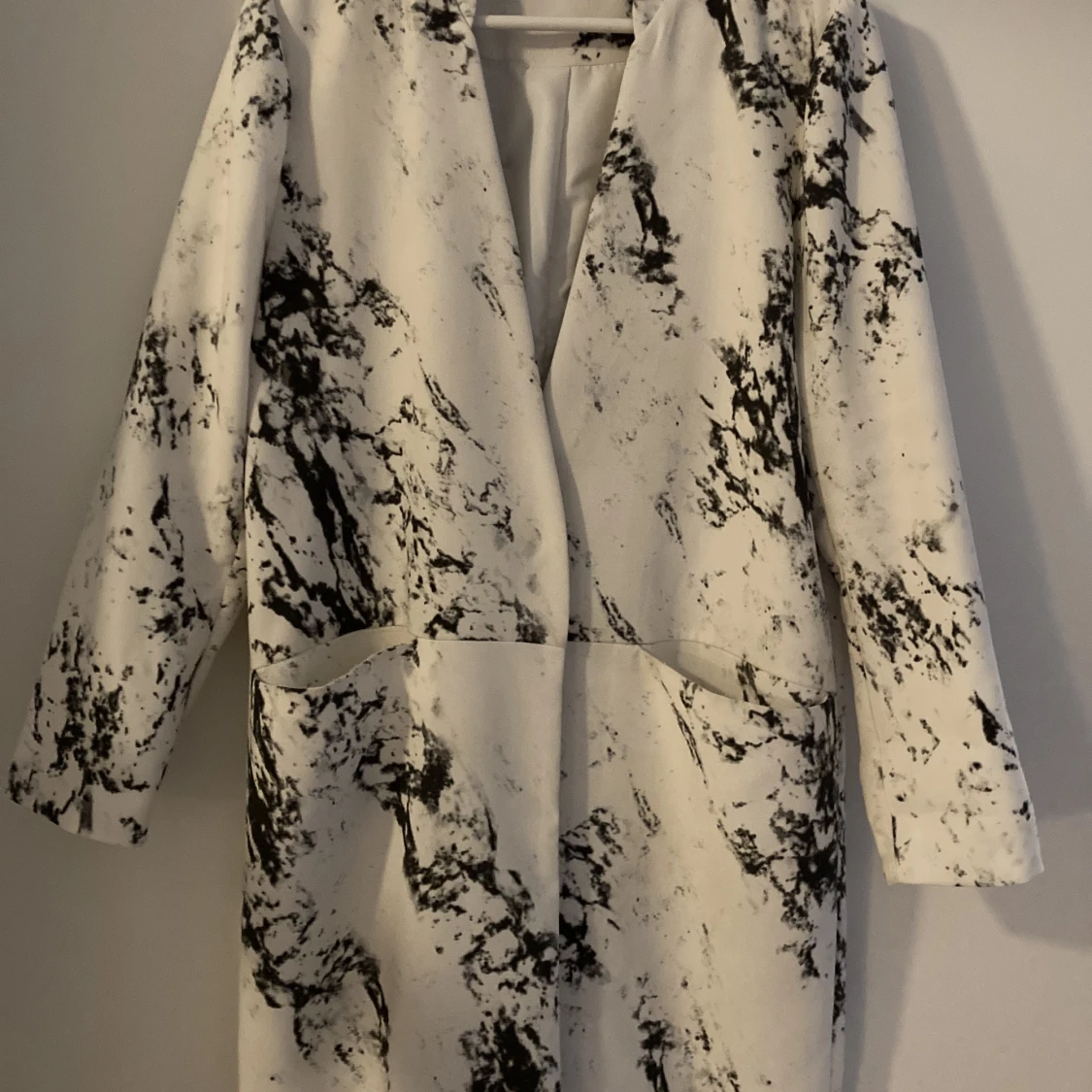 Vit jacka med svart melerat mönster. Märke Gina Tricot, strl 40 Ett par mindre smutsfläckar, se bilder.