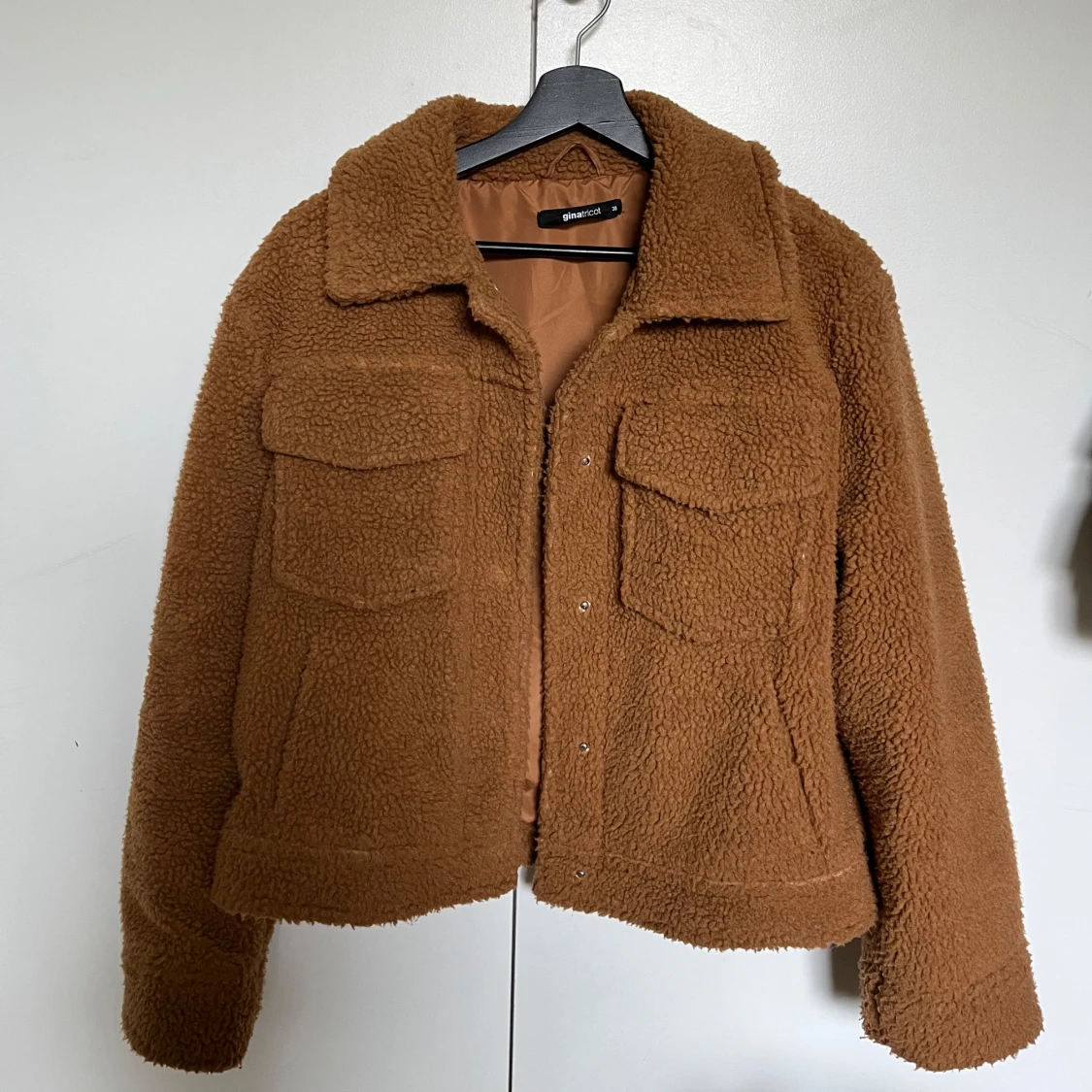Mysig brun teddyjacka från Gina Tricot med krage och två stora bröstfickor. Jackan är croppad och har knappar framtill. Perfekt för kyligare dagar och ger en trendig look. Storlek 38 men passar xs-m, endast testad💗