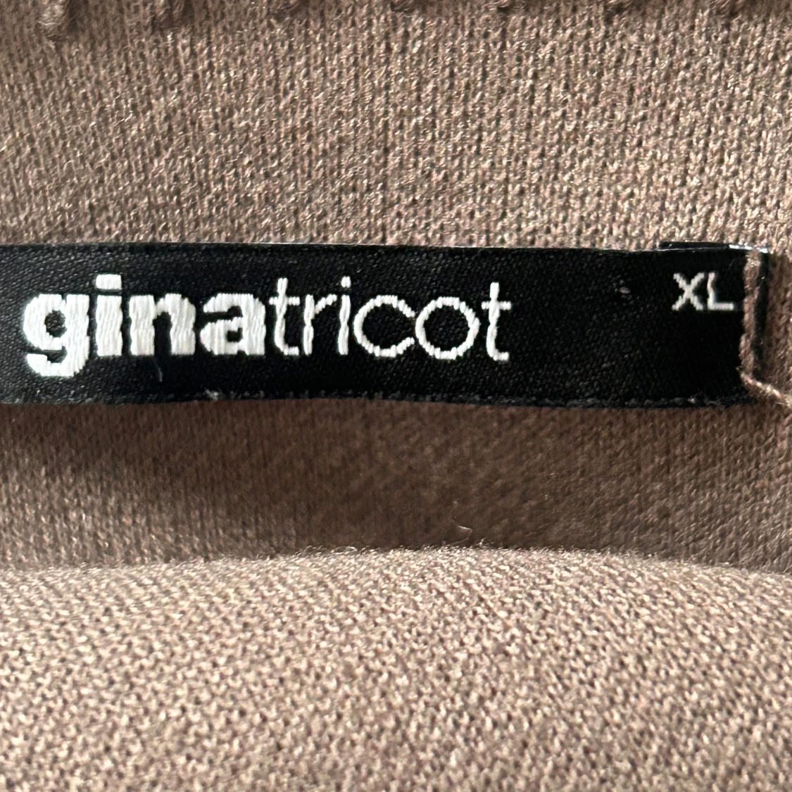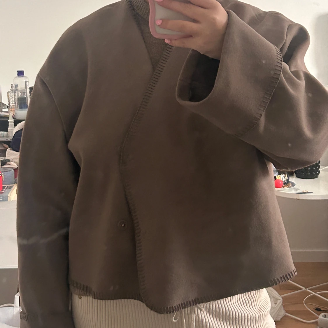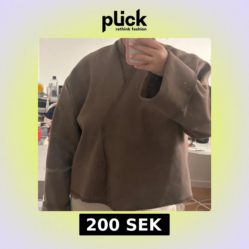 Säljer en brun jacka från Gina Tricot i storlek XL. Jackan har en unik omlott-design med långa ärmar och en stilren look. Den är liten i storleken jag har vanligtvis en M.