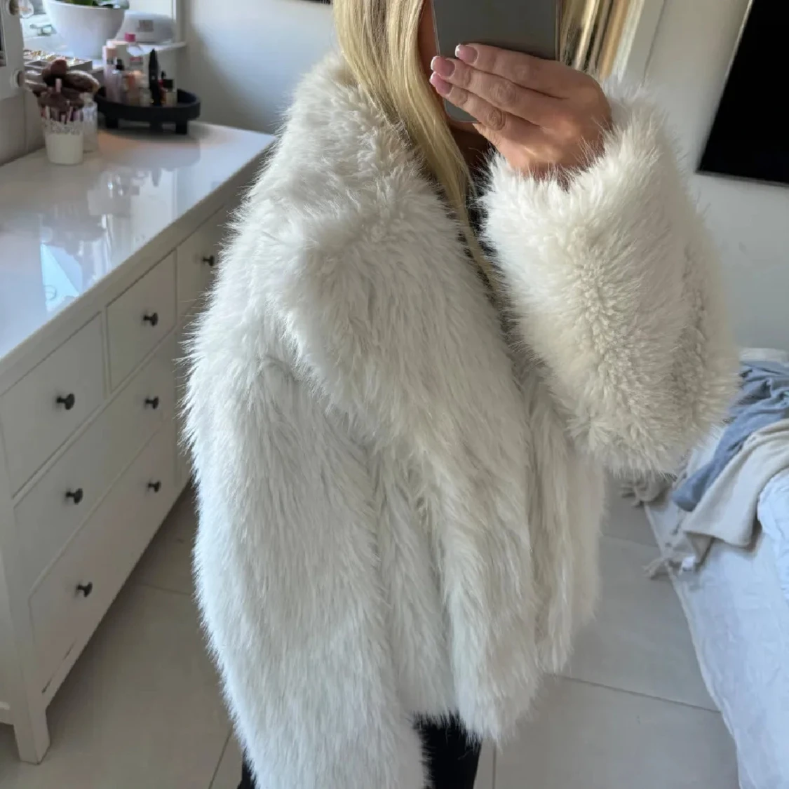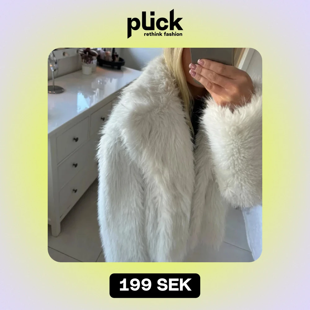 En vit as gullig päls jacka bara andvänd en gång och köpt på Plick. Inga tecken på andvänding💞(lånade bilder)