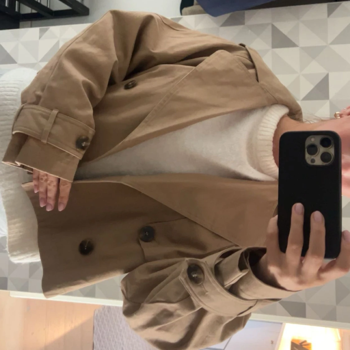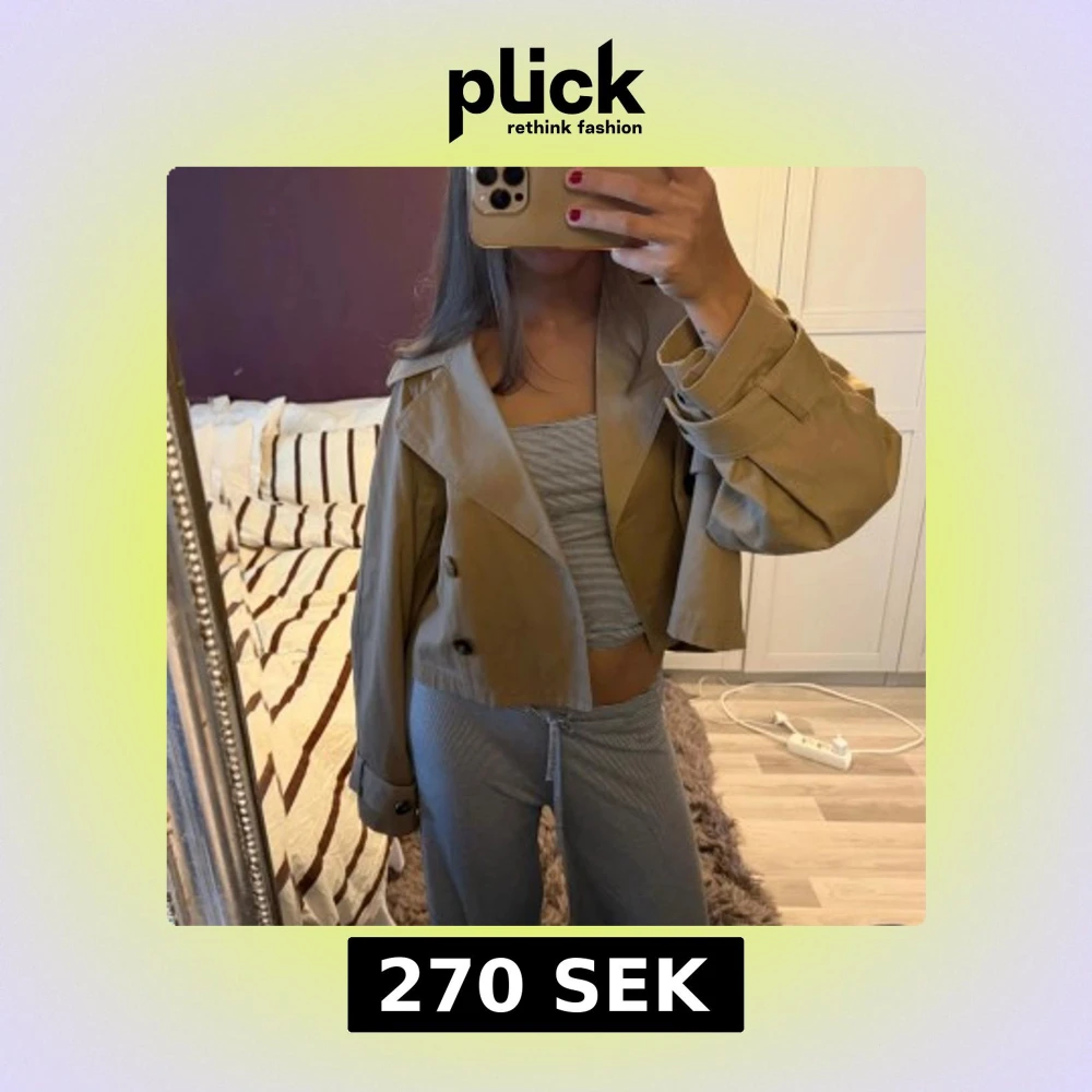 Säljer en croppad trenchcoat i beige/ljusbrun förg från Gina Tricot.