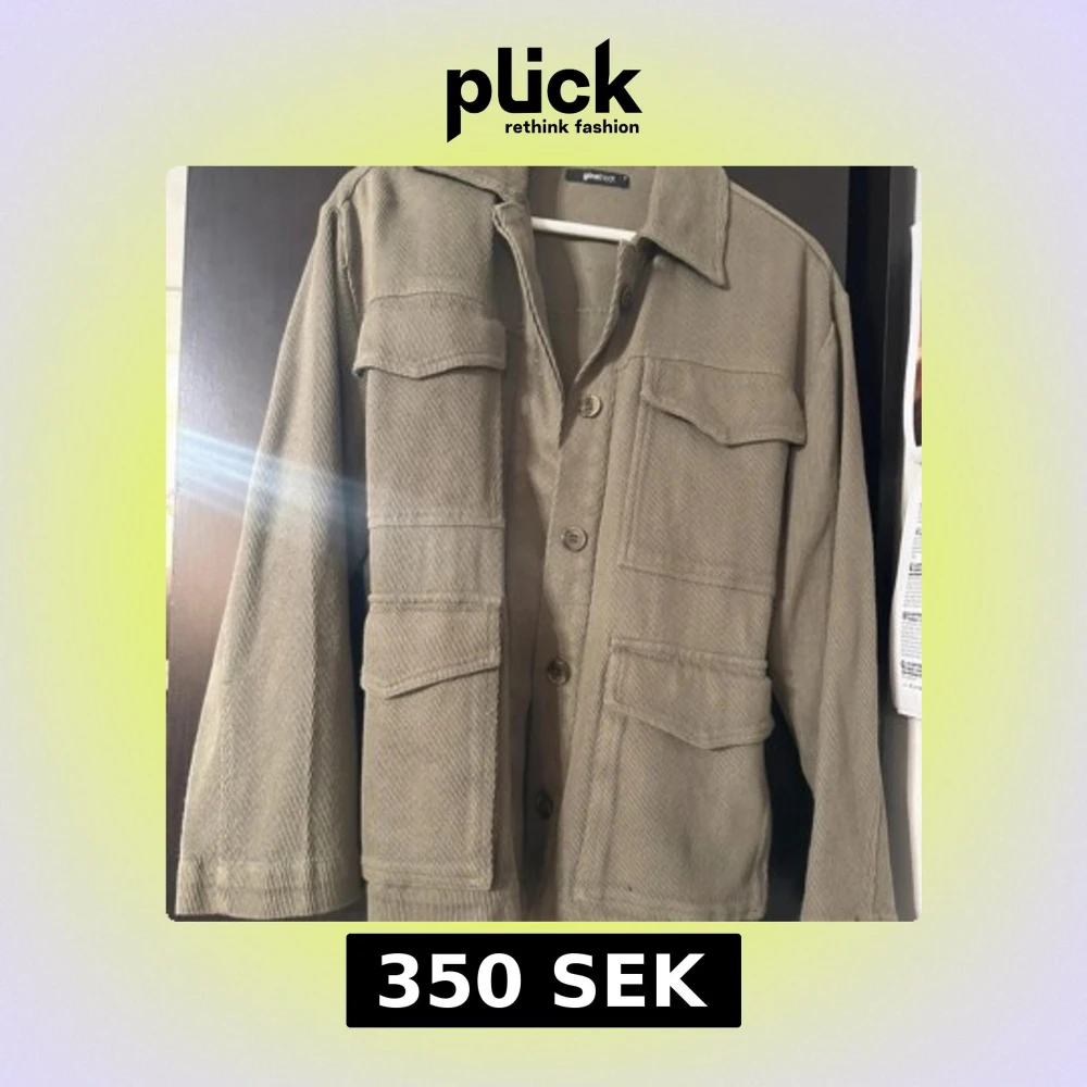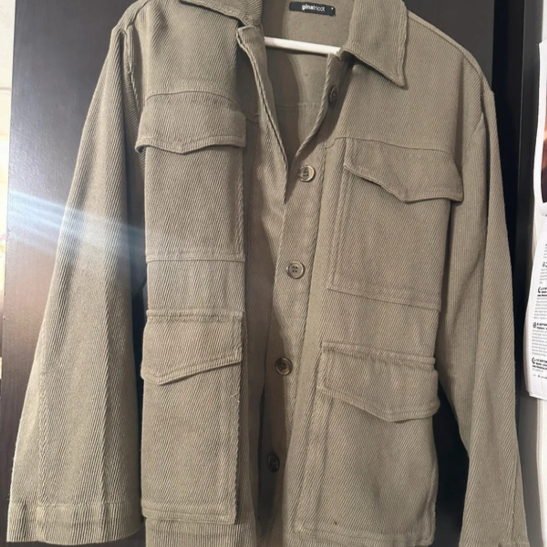 Stilren grön jacka från Gina Tricot med fyra stora fickor framtill, knäppning med knappar och bälte i midjan. Jackan har klassisk krage och raka ärmar, perfekt för lager-på-lager och en chill look. Jackan har även slits på sidan.