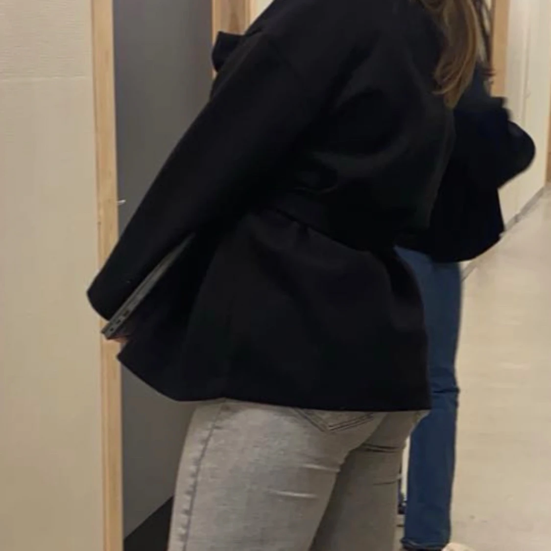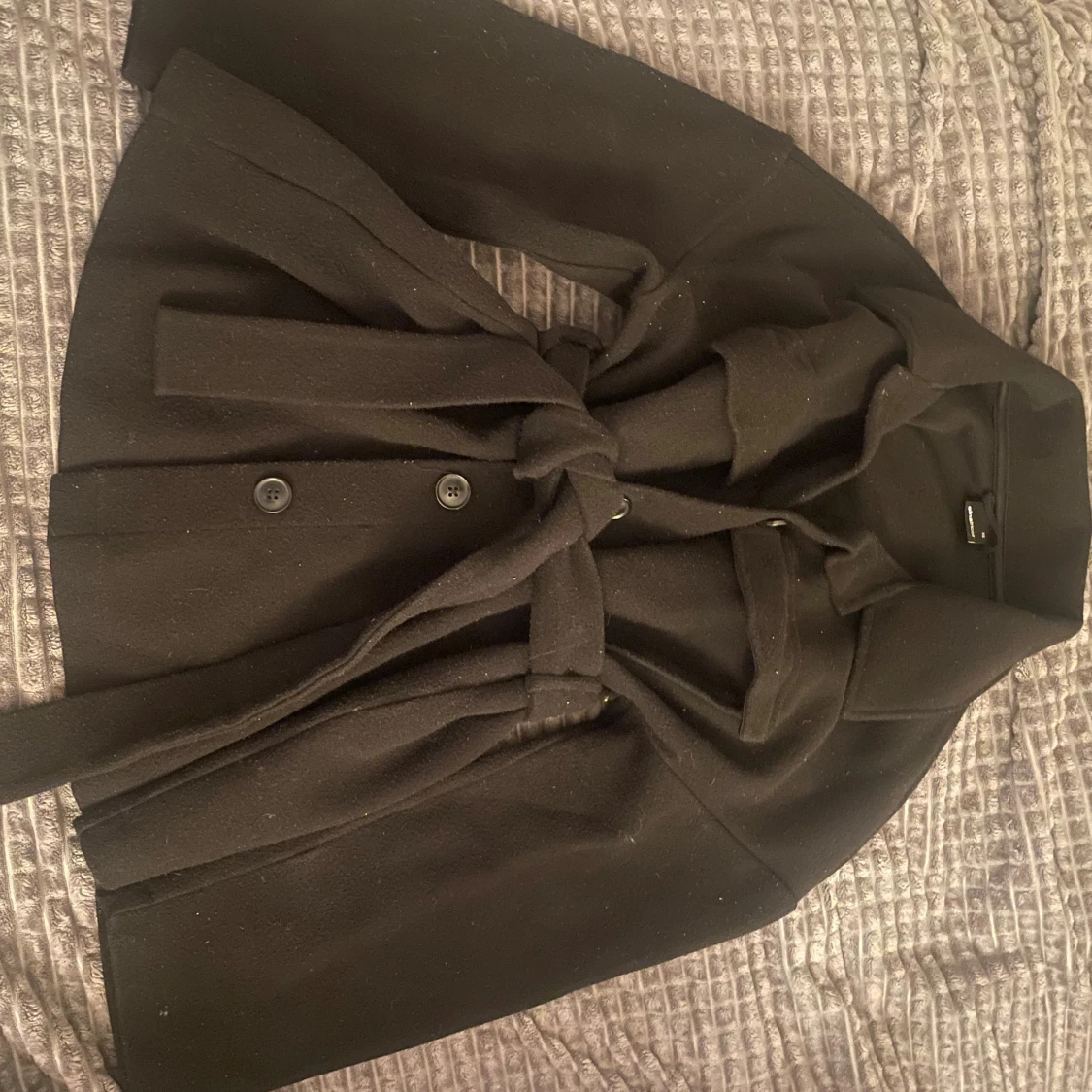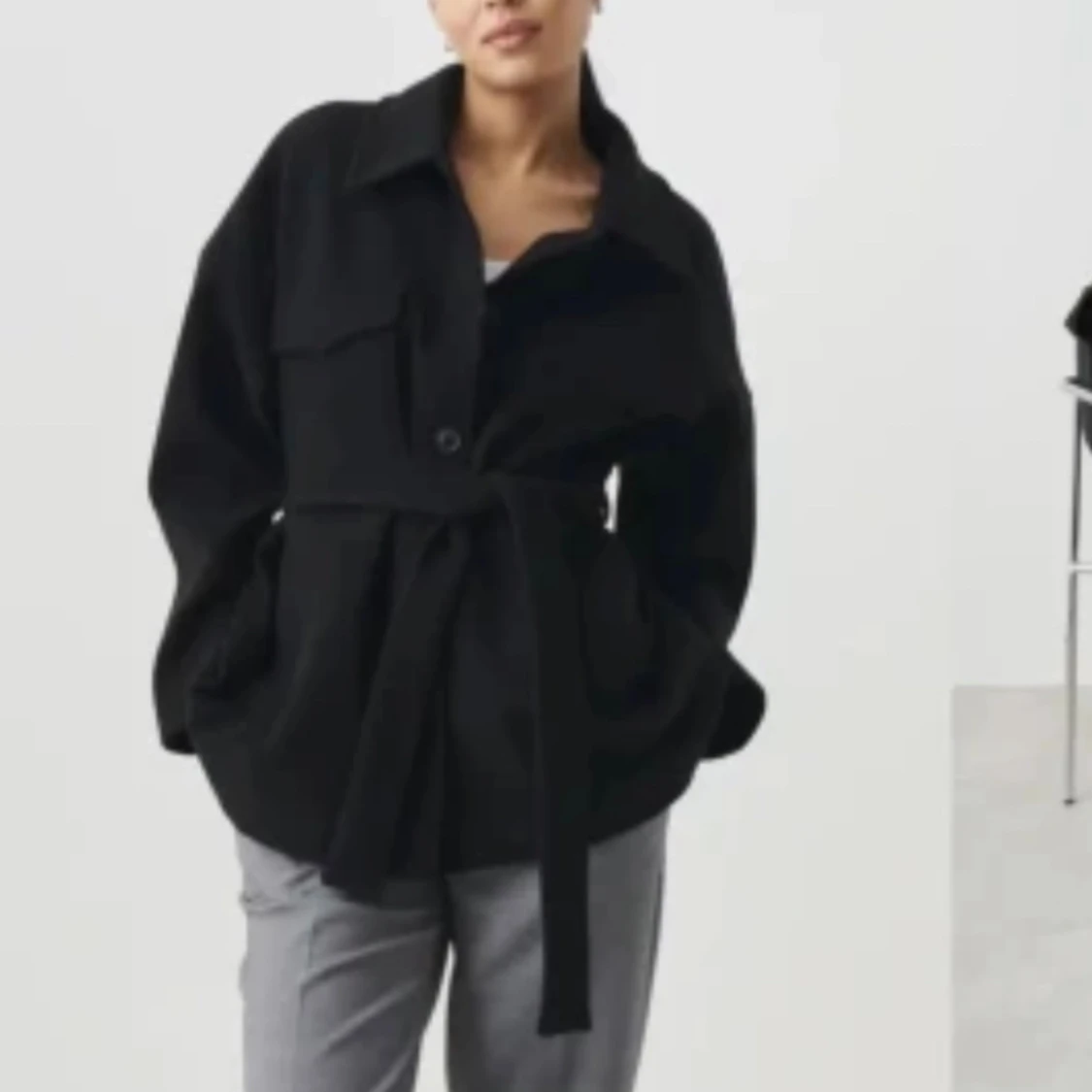 Svart kappa från Gina Tricot i ullmix med knappar framtill och knytskärp i midjan. Jackan har klassisk krage, stora fickor och lång ärm. Perfekt för lager-på-lager och ger en chill men snygg vibe. Priset går att buda på🥰