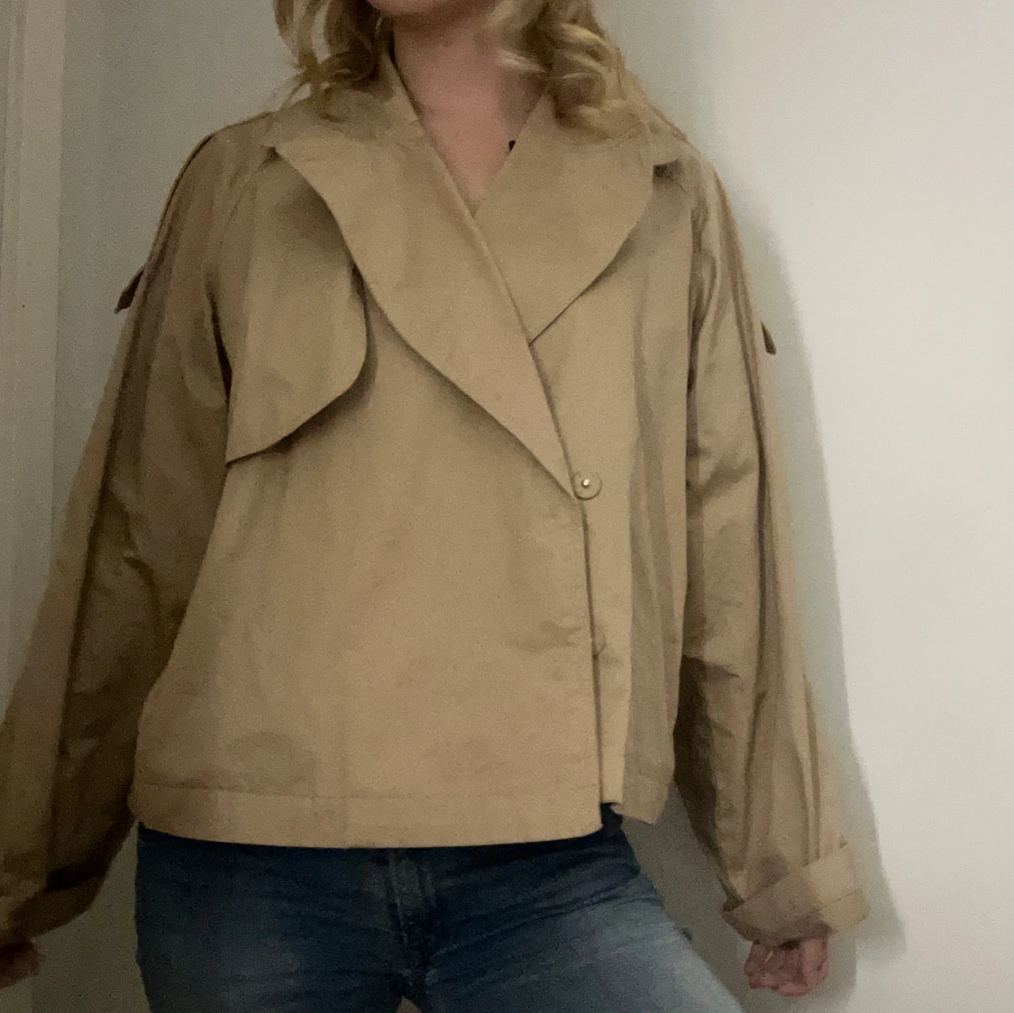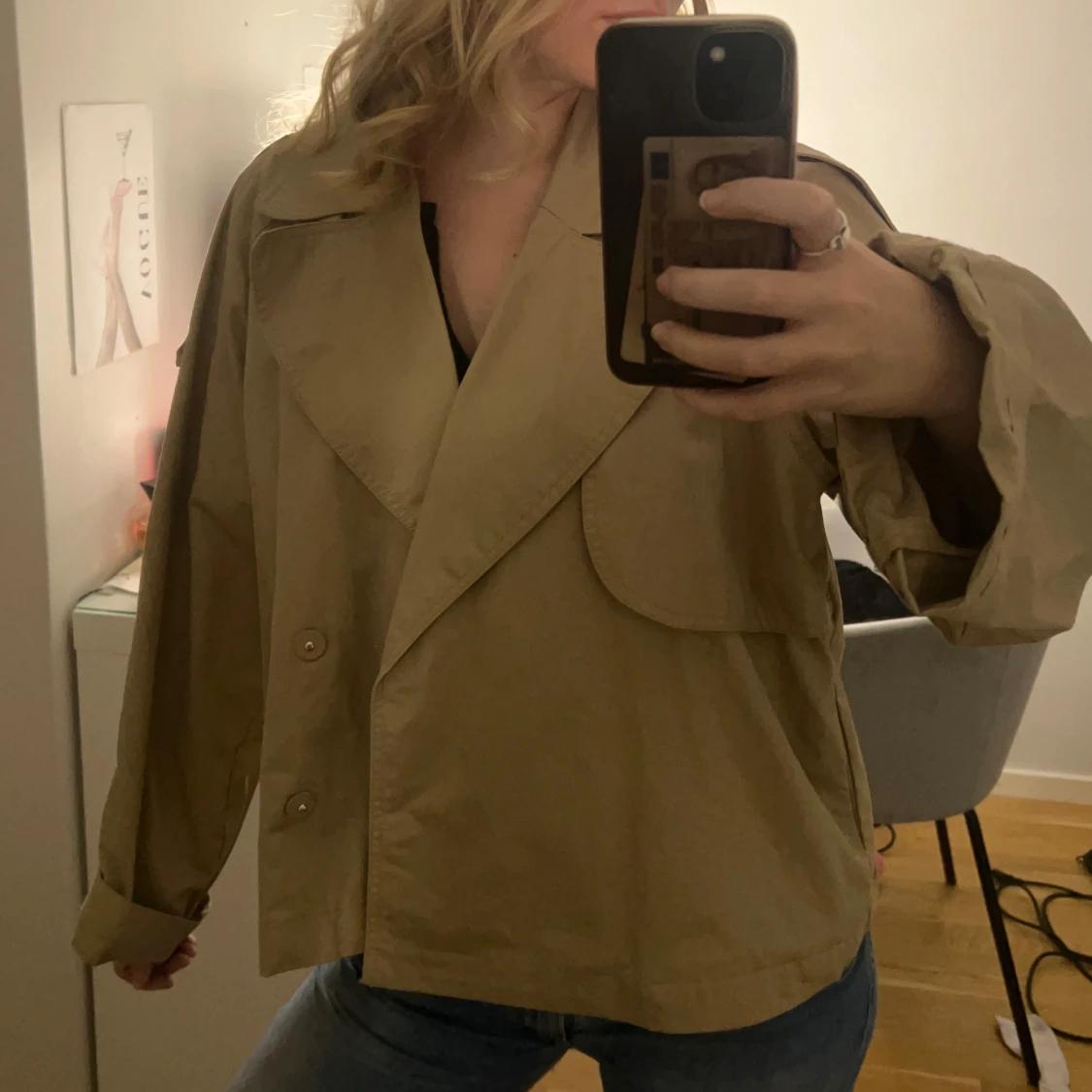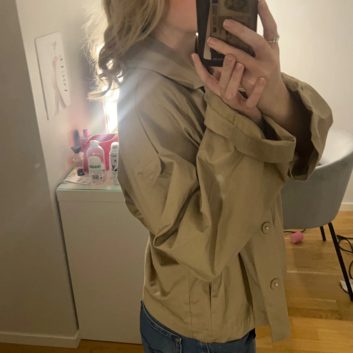 Snygg brun/beige trenchcoat från gina tricot! Kommer tyvärr ej till användning då den är för stor på mig som vanligtvis har strl S
