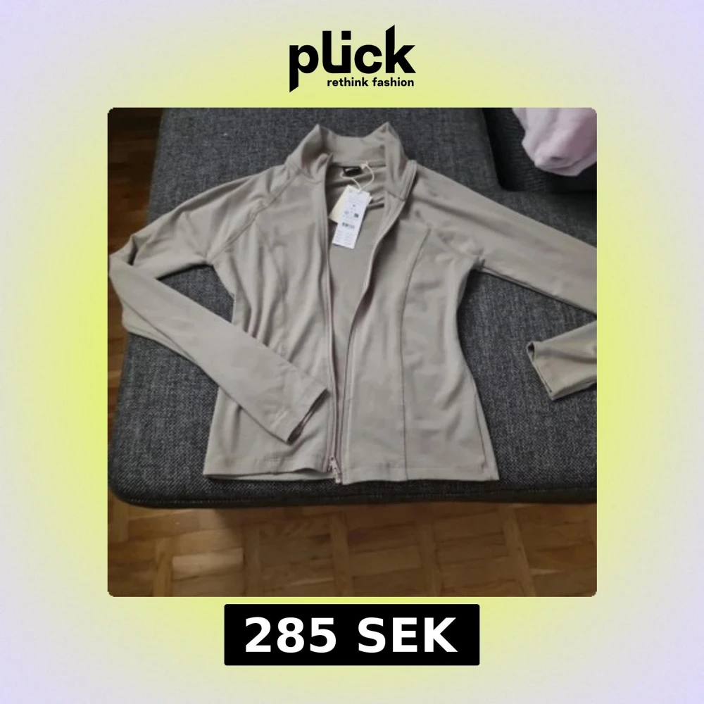 Snygg grå-grön jacka med dragkedja framtill och hög krage. Jackan har en slimmad passform och är tillverkad i ett mjukt, stretchigt material som känns skönt mot huden. Perfekt för lager-på-lager och enkel att matcha med olika outfits. Helt ny