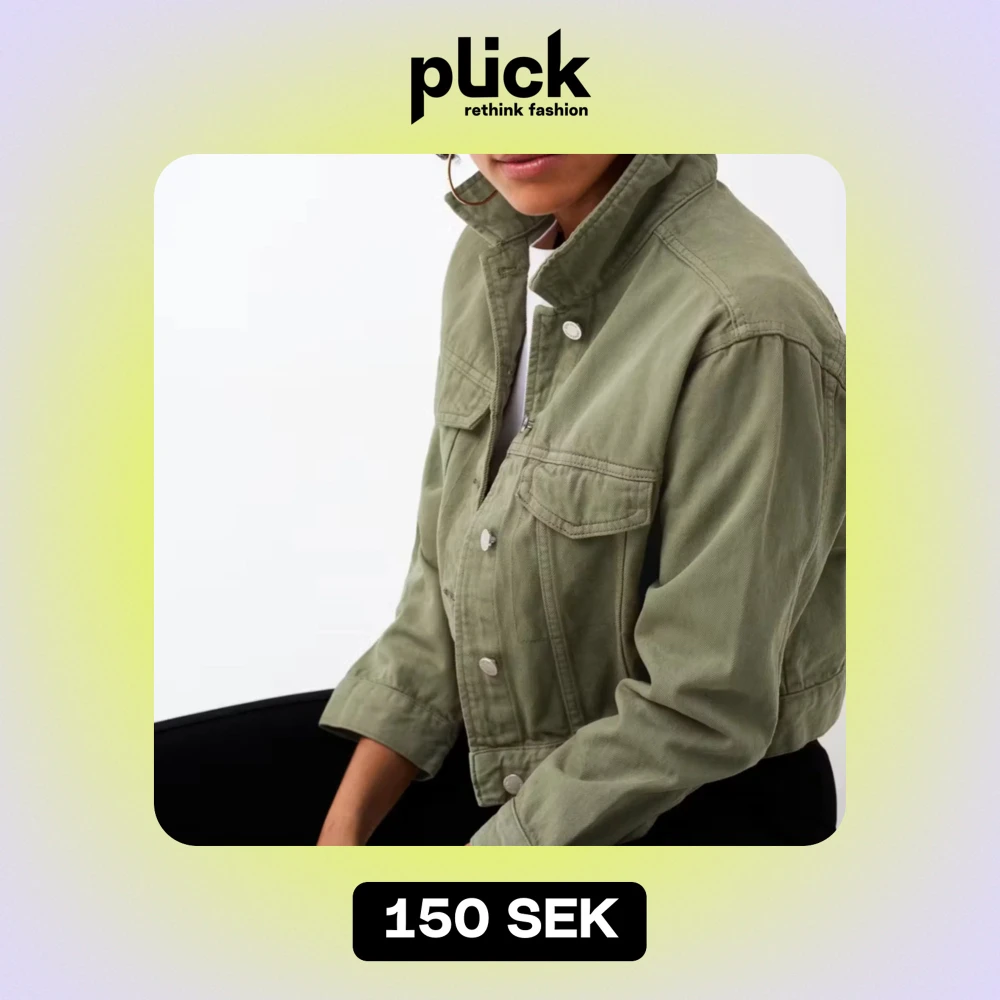 Snygg olivgrön jeansjacka i croppad stil med knappar framtill. Perfekt för vår och höst, med en cool och avslappnad look. Jackan har långa ärmar och två bröstfickor med lock. Passar perfekt till både vardag och fest! Pris kan diskuteras!!
