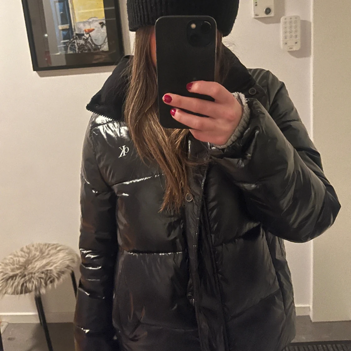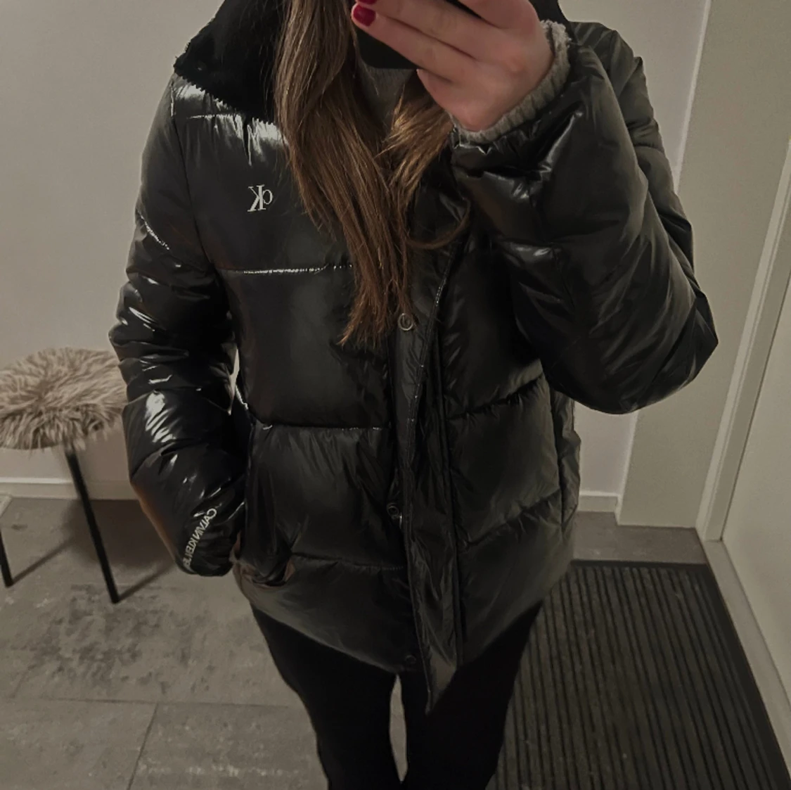 Glansig vinterjacka från Calvin Klein💓nypris är 2000 och den är i väldigt bra skick. Finns en mysig stor luva att sätta på också!