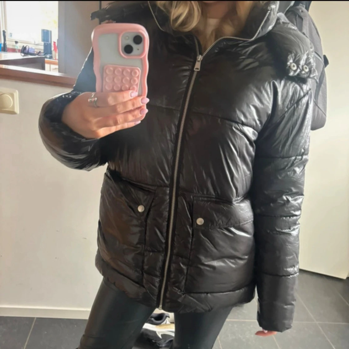 Säljer en svart pufferjacka från ONLY. Den är väldigt varm och är bara använd en vinter, den är lite stor i storleken så passar även s.