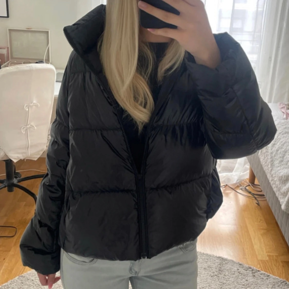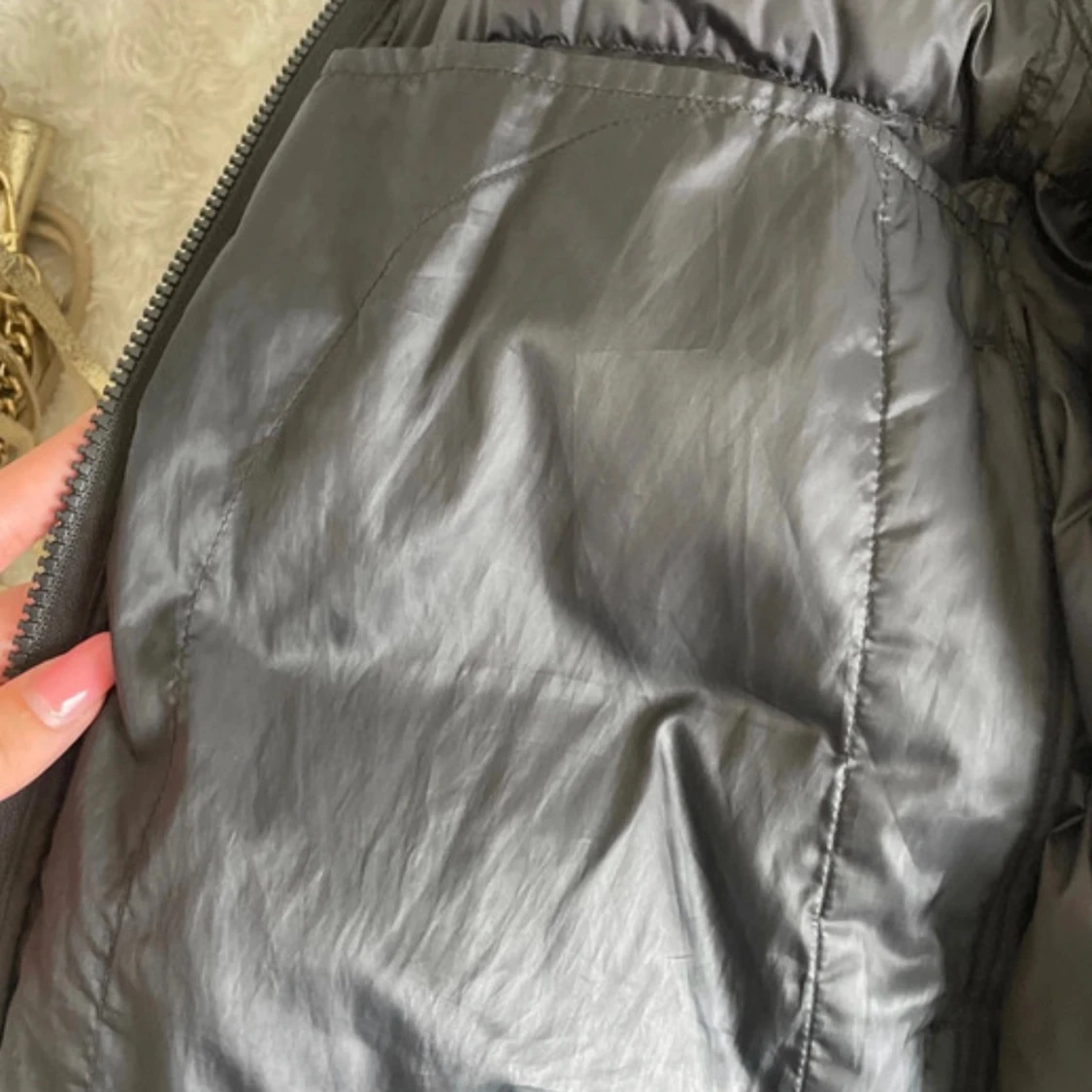Trendig glansig jacka som piffar upp outfiten!Perfekt till vintern då den är i dun vilket gör den varm och skön! Den är lätt att bära och får även plats i påsen som medföljer till jackan. Den har fickor med blixtlås och även två innerfickor. Kom privat vid frågor!❤️