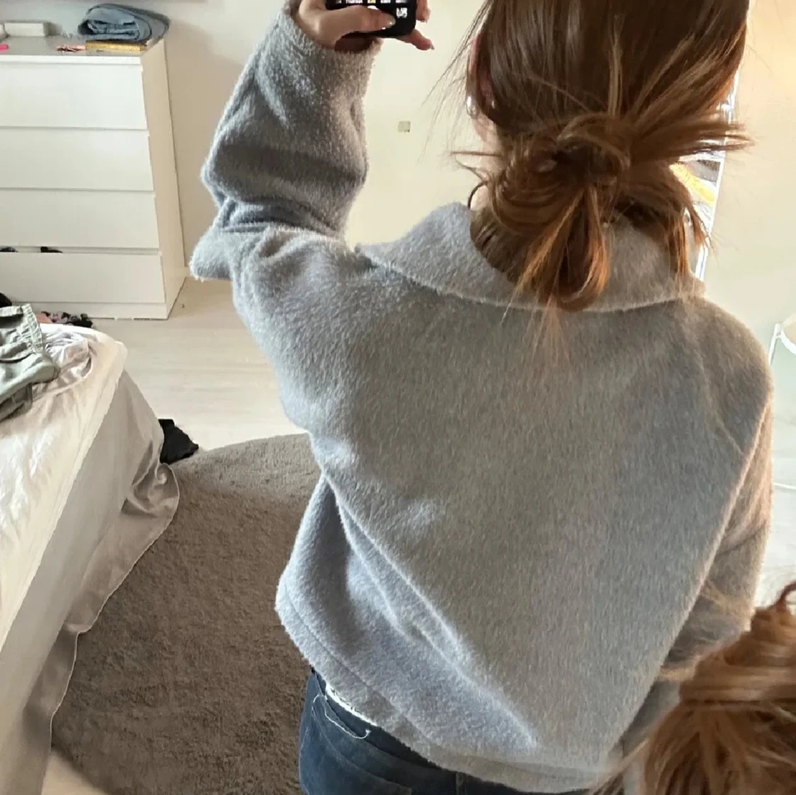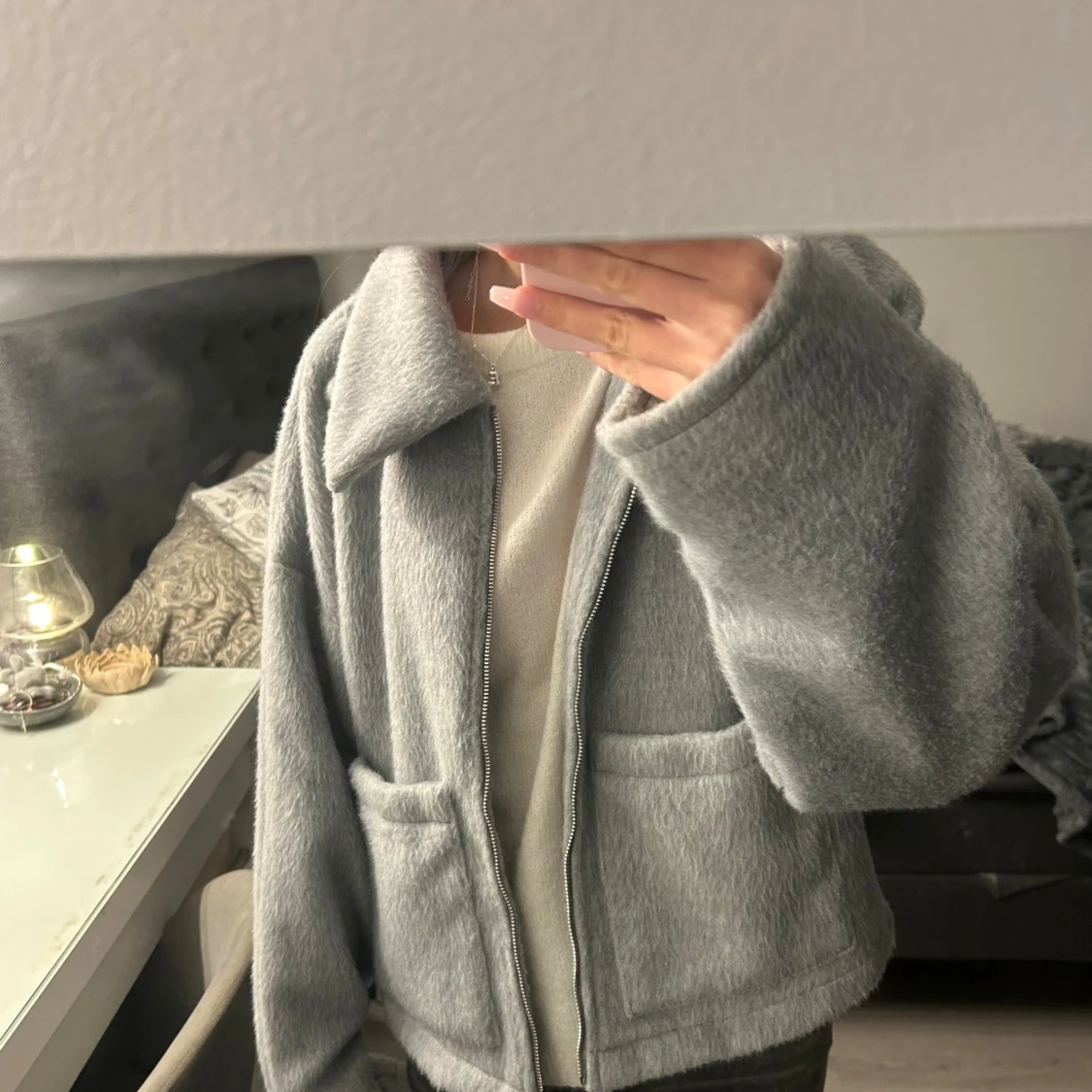 Köpt för 599, aldrig använd. Supermjuk och fluffig grå teddyjacka från Vila med stora fickor framtill och dragkedja. Jackan har en oversized passform och bred krage, perfekt för att hålla sig varm och snygg under kyliga dagar.
