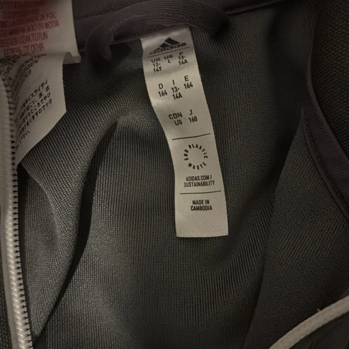 Snygg grå jacka från Adidas med vit dragkedja och logga på bröstet. Jackan har hög krage, två fickor framtill och är tillverkad i polyester. Perfekt för dig som gillar sportig stil och vill ha något bekvämt och stilrent.