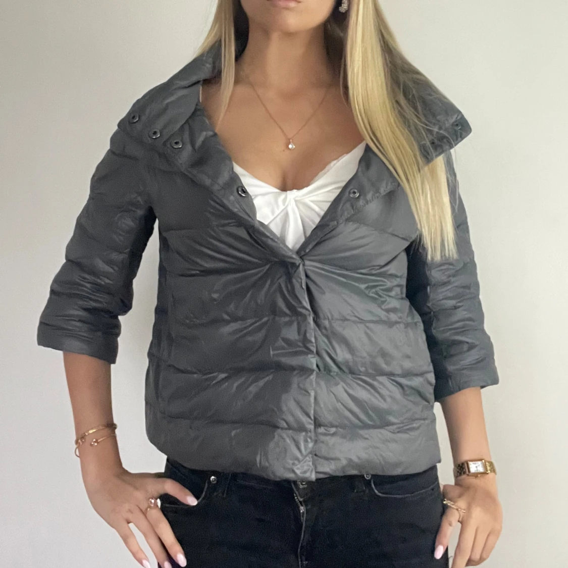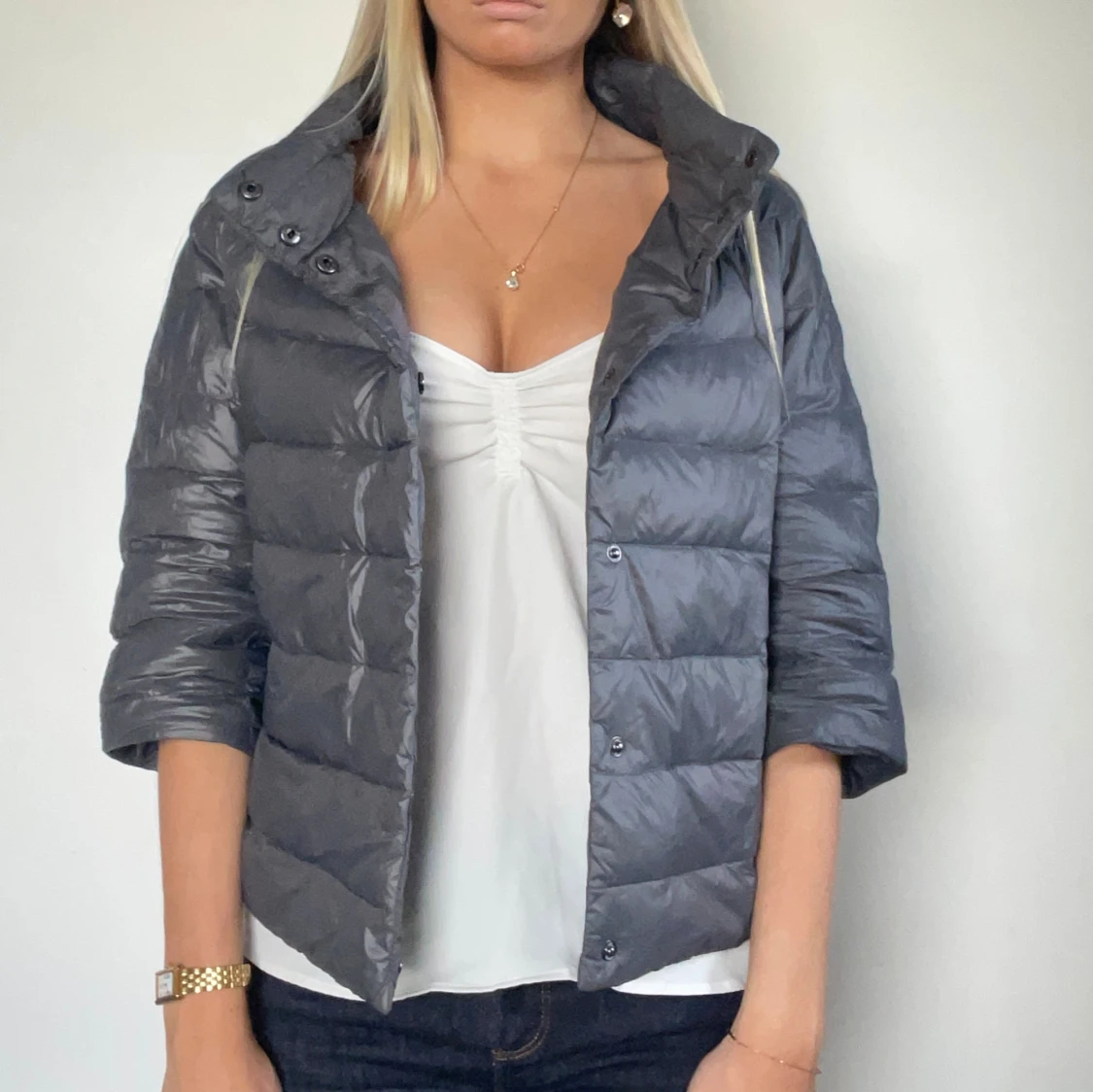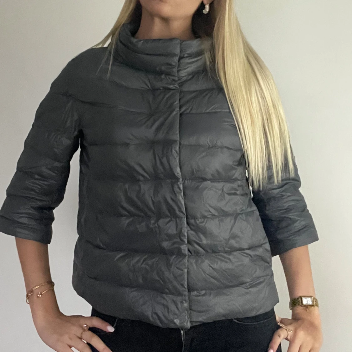 FÖLJ FÖR LIKANDE! 🩷 grå/blå Herno liknande jacka som är perfekt för höst/vinter. Storlek M men passar en S. Perfekt skick! Tryck köp nu! TK-0064