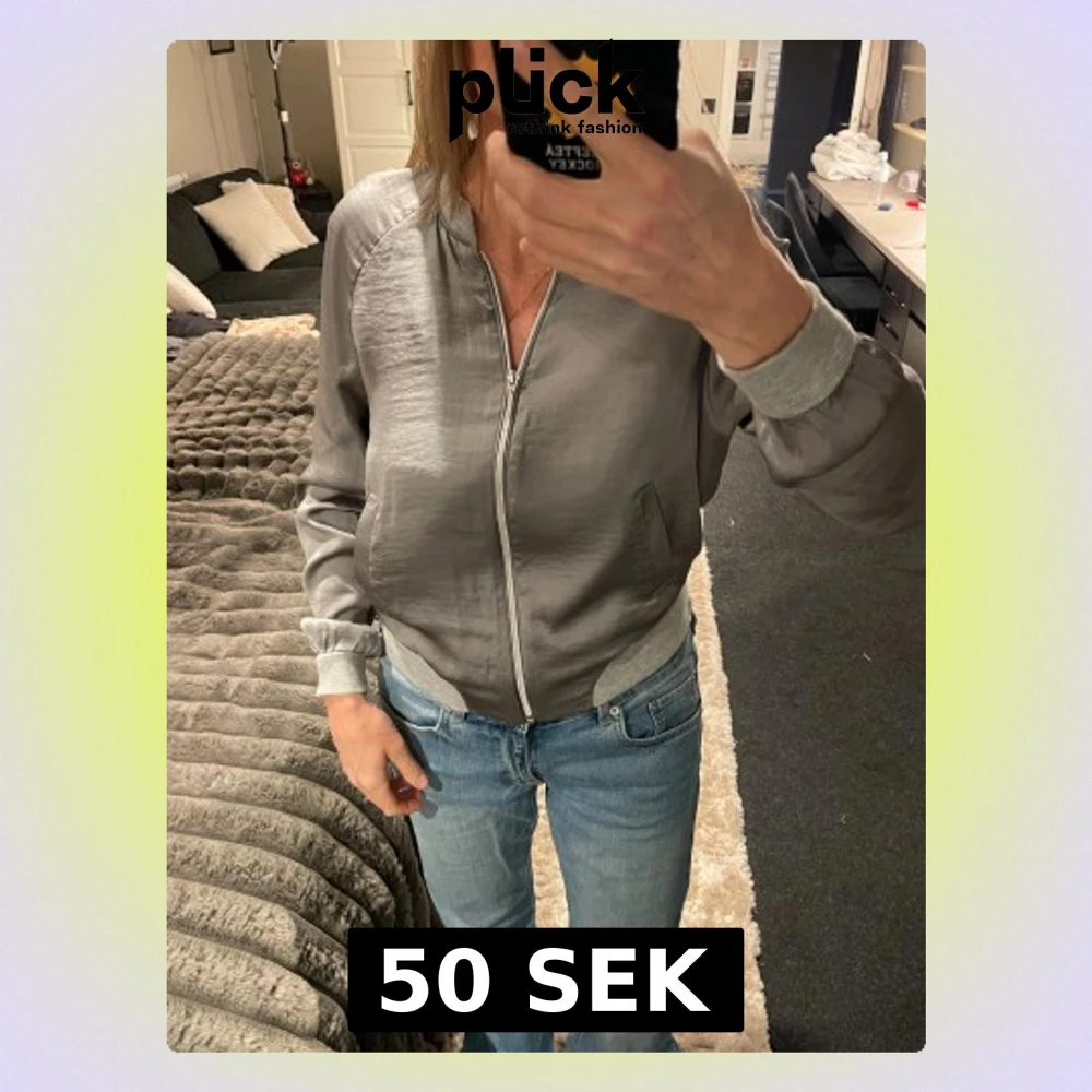 Snygg grå bomberjacka från Vero Moda i storlek S. Jackan har ribbade muddar vid ärmslut och midja, samt dragkedja framtill. Materialet är slätt och har en lätt glansig finish. Perfekt för dig som gillar en clean och stilren look.