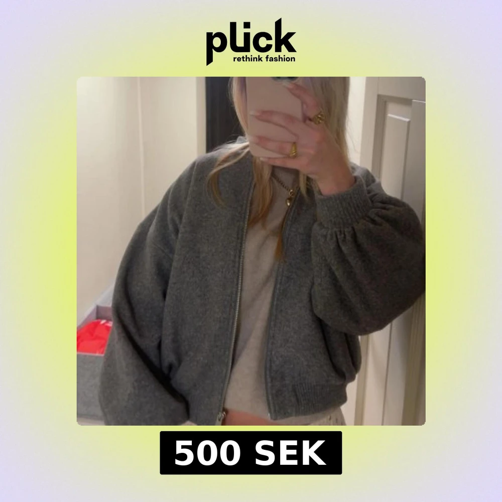 Säljer en grå bomberjacka med oversized passform och ballongärmar. Jackan har dragkedja framtill, ribbade muddar vid ärmslut och midja. Materialet är en mjuk ullmix som känns både varm och stilren. Perfekt för dig som gillar en chill och trendig look.