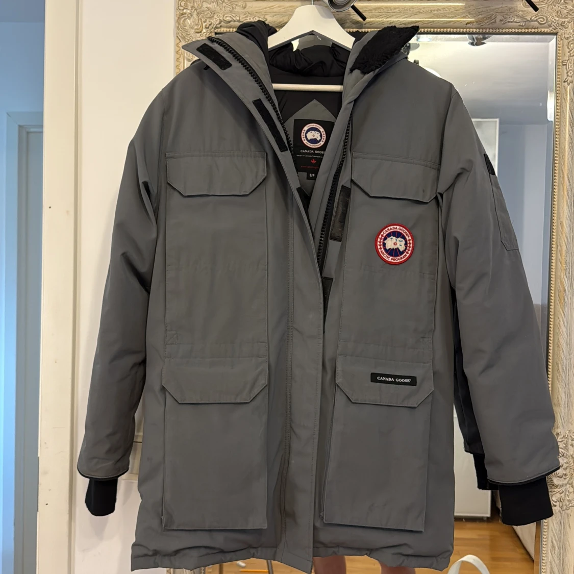 Säljer en grå Canada Goose Expedition dunjacka med stor huva, flera praktiska fickor och klassisk logga på bröstet. Jackan har svarta muddar vid ärmsluten och är perfekt för kalla vinterdagar. Väldigt fint skick. Nypris 11000 kr