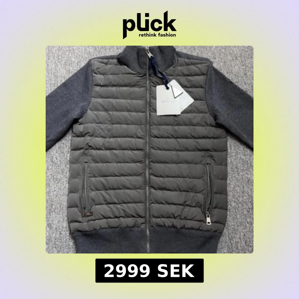 Snygg grå pufferjacka från Moncler med quiltad framsida och mjuka stickade ärmar. Jackan har två fickor med dragkedja, hög krage och ribbade muddar. Perfekt för dig som vill ha en stilren look med exklusiv känsla. Dragkedja framtill och diskret Moncler-logga på insidan.