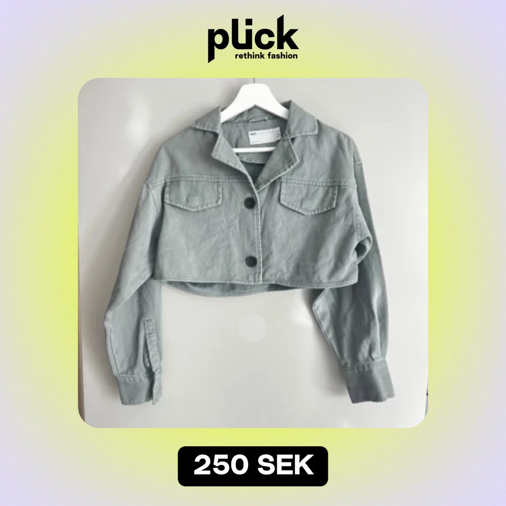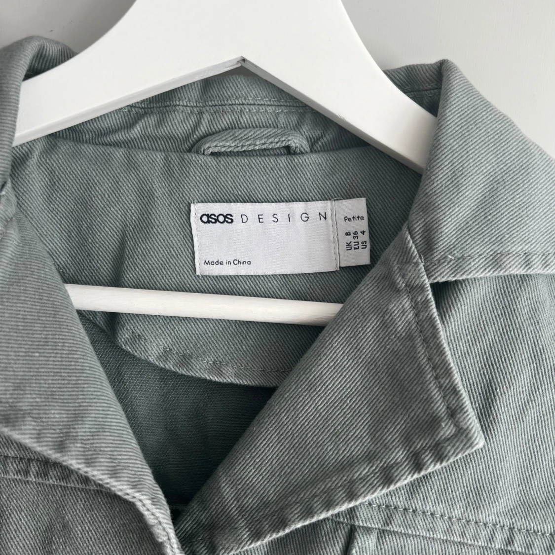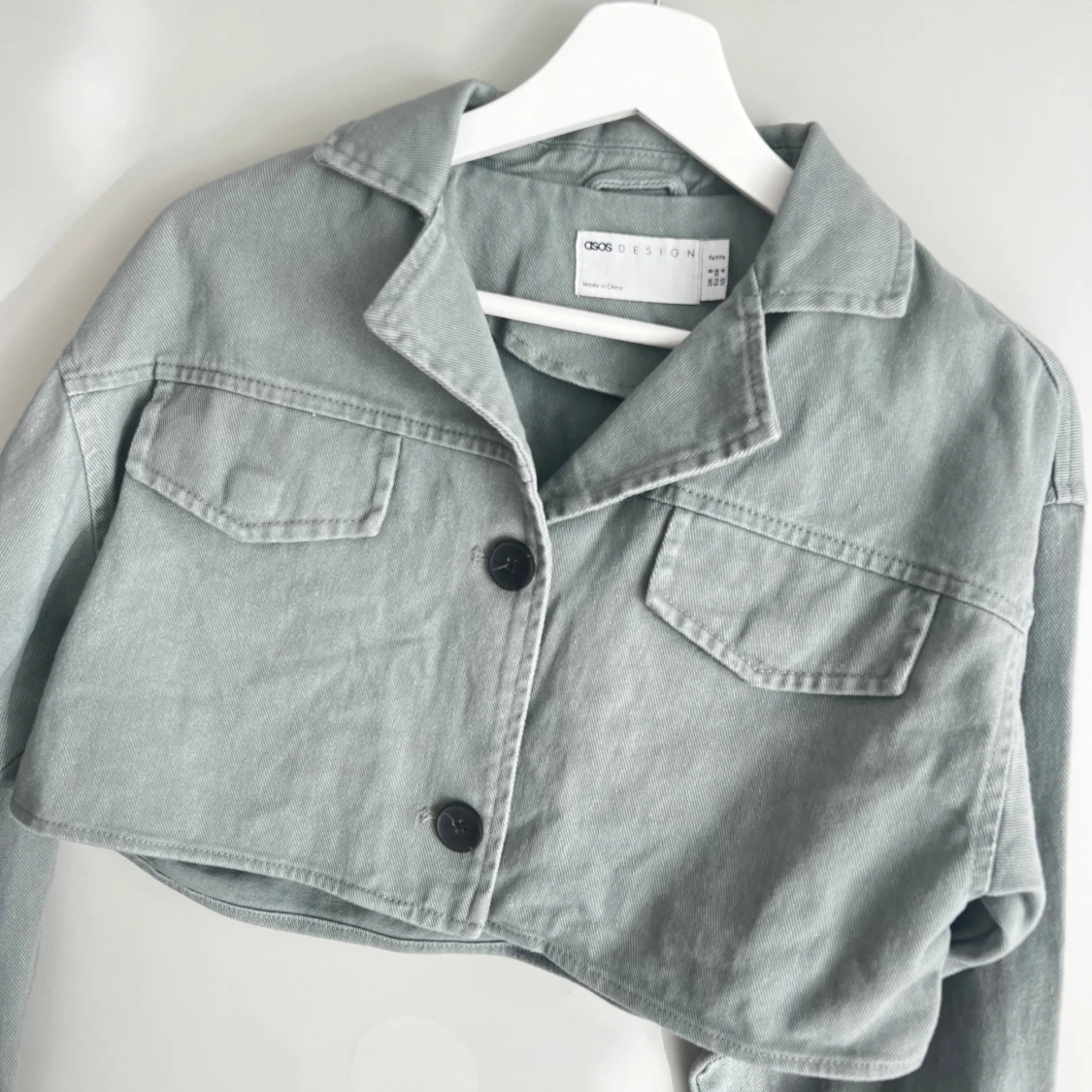 Säljer en snygg khaki croppad jacka från ASOS DESIGN. Jackan har en cool, avslappnad stil med två stora knappar framtill och två bröstfickor. oanvänd