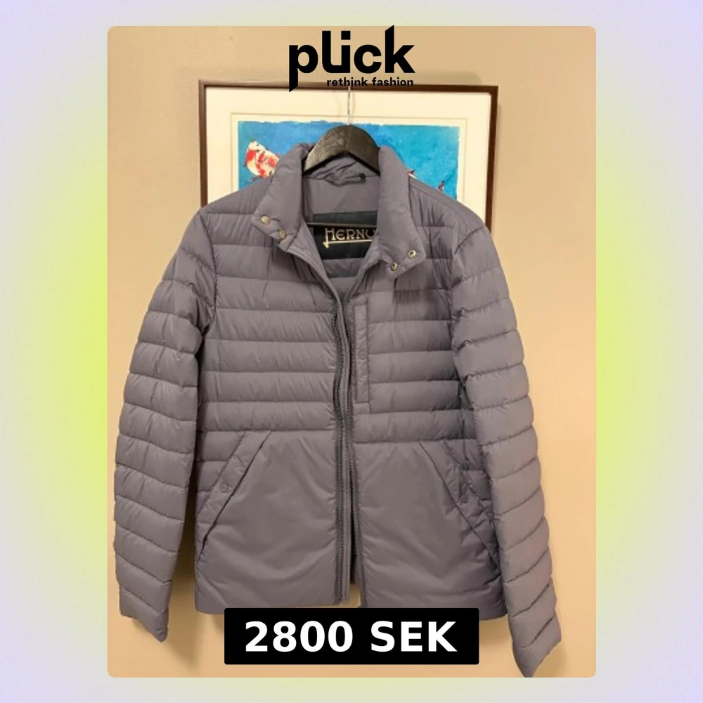 Snygg grå dunjacka från Herno med quiltad design och hög krage. Jackan har dragkedja framtill, tryckknappar vid kragen och två stora fickor. Perfekt för kyliga dagar och har en stilren look som funkar till det mesta. Använd en gång och nypris flera tusen.