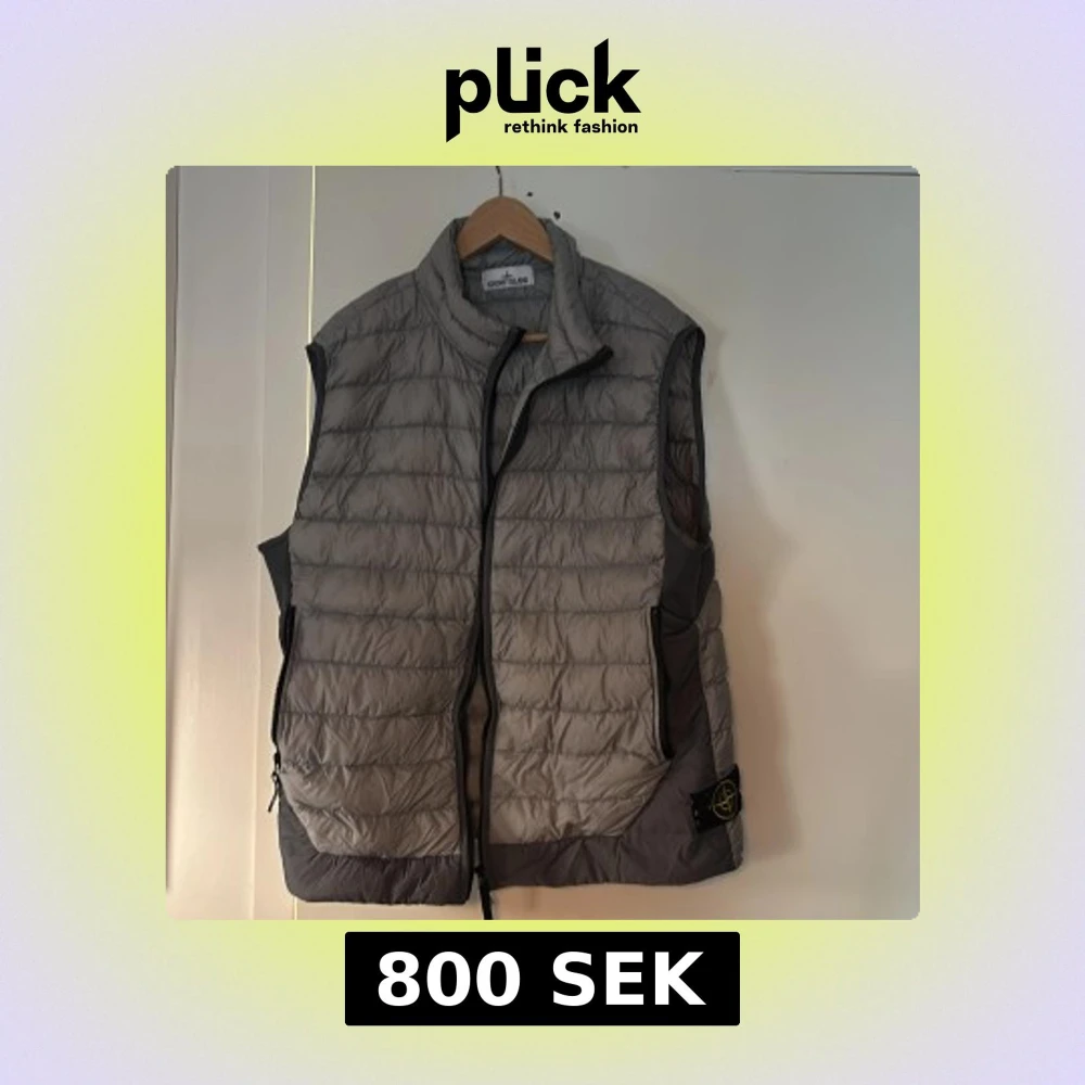 Snygg grå dunväst från Stone Island med quiltad design och hög krage. Västen har dragkedja framtill, två sidofickor med dragkedja och den klassiska Stone Island-loggan på sidan. Perfekt lager-på-lager-plagg med lätt och smidig känsla.