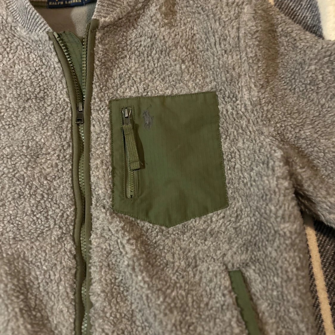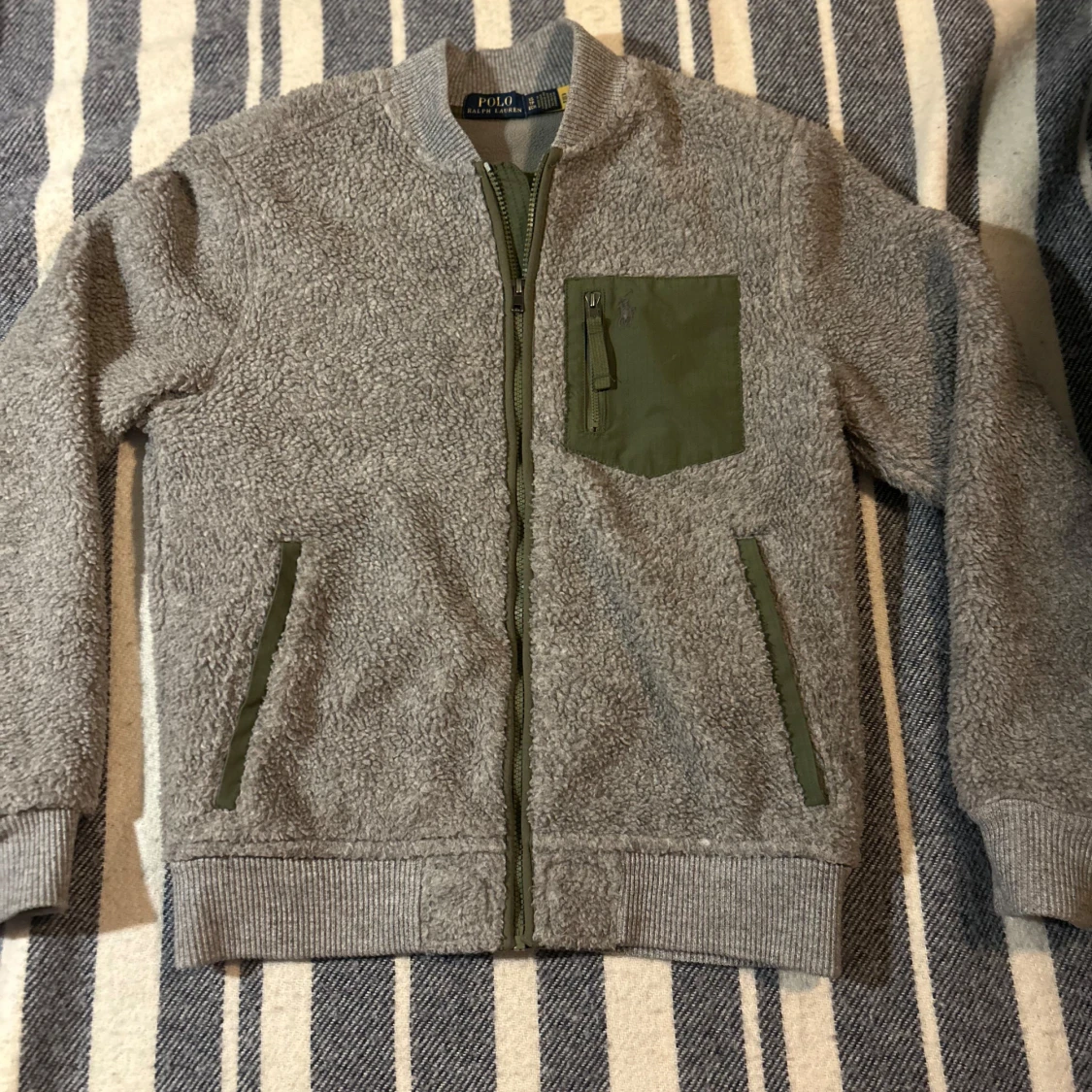 Säljer en snygg grå fleece från Ralph Lauren med gröna detaljer. Jackan har en dragkedja framtill och en praktisk bröstficka med dragkedja. Perfekt för kyliga dagar! Storleken är Xs men passar även S bra! Ifall du har några funderingar är det bara att höra av sig!👀👀