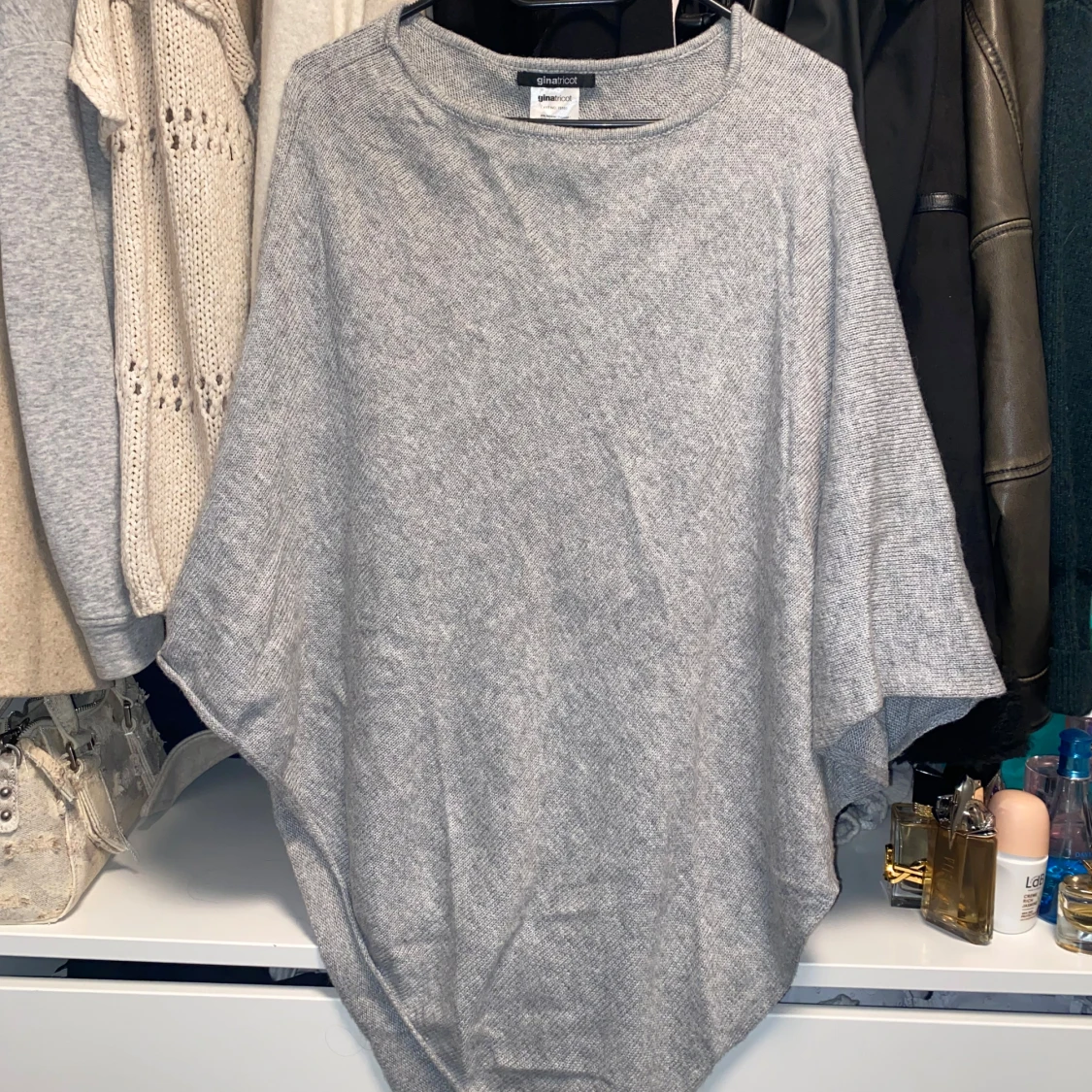 grå poncho från ginatricot som använts väl, men fortfarande går att använda