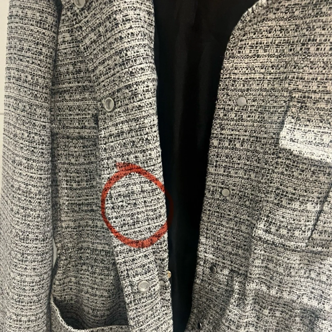Snygg och trendig grå overshirt från Cloeys med svartvitt rutigt mönster. Jackan har stora bröstfickor med knappar, markerad krage och tryckknappar framtill. Oversized passform och långa ärmar, perfekt för lager-på-lager-stil.