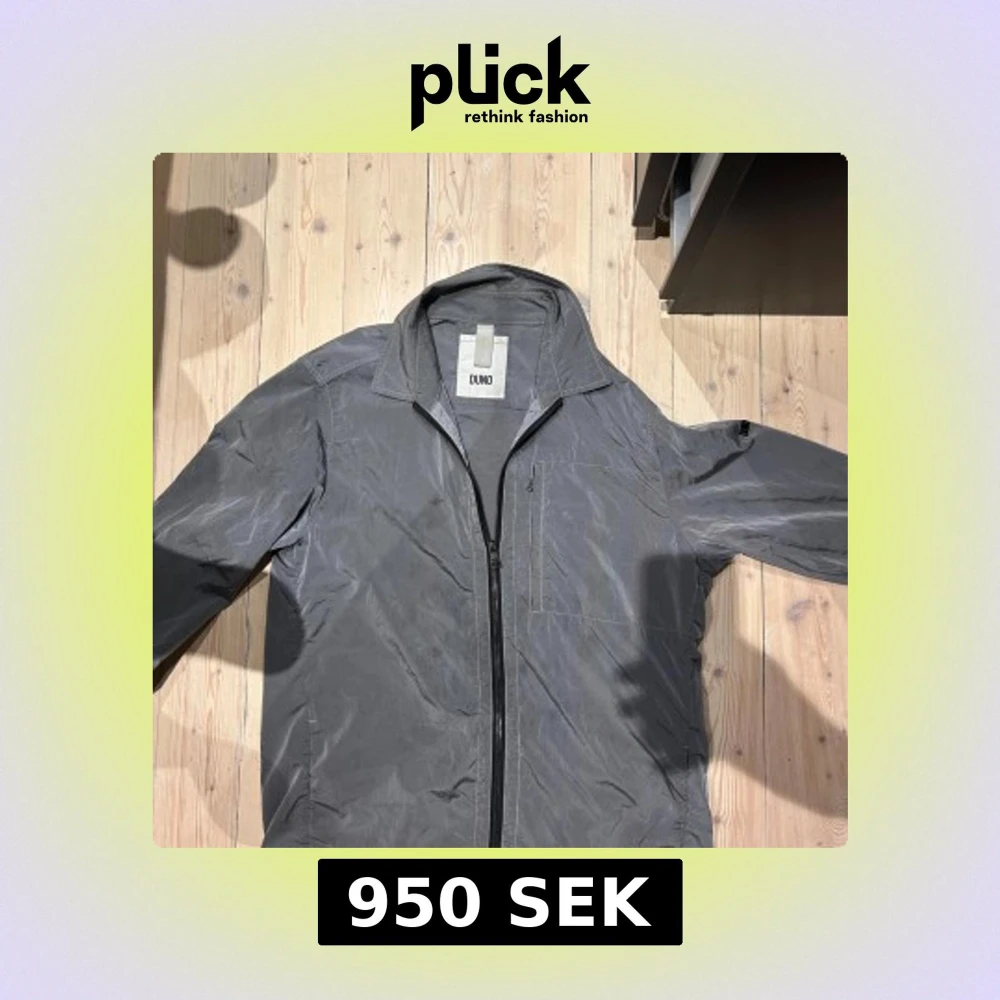 Grå jacka eller overshirt från Duno i speciellt reflexmaterial. Väldigt tunn sommarjacka. Storlek M. Ett synligt märke finns på sista bilden. Nypris 2700