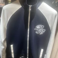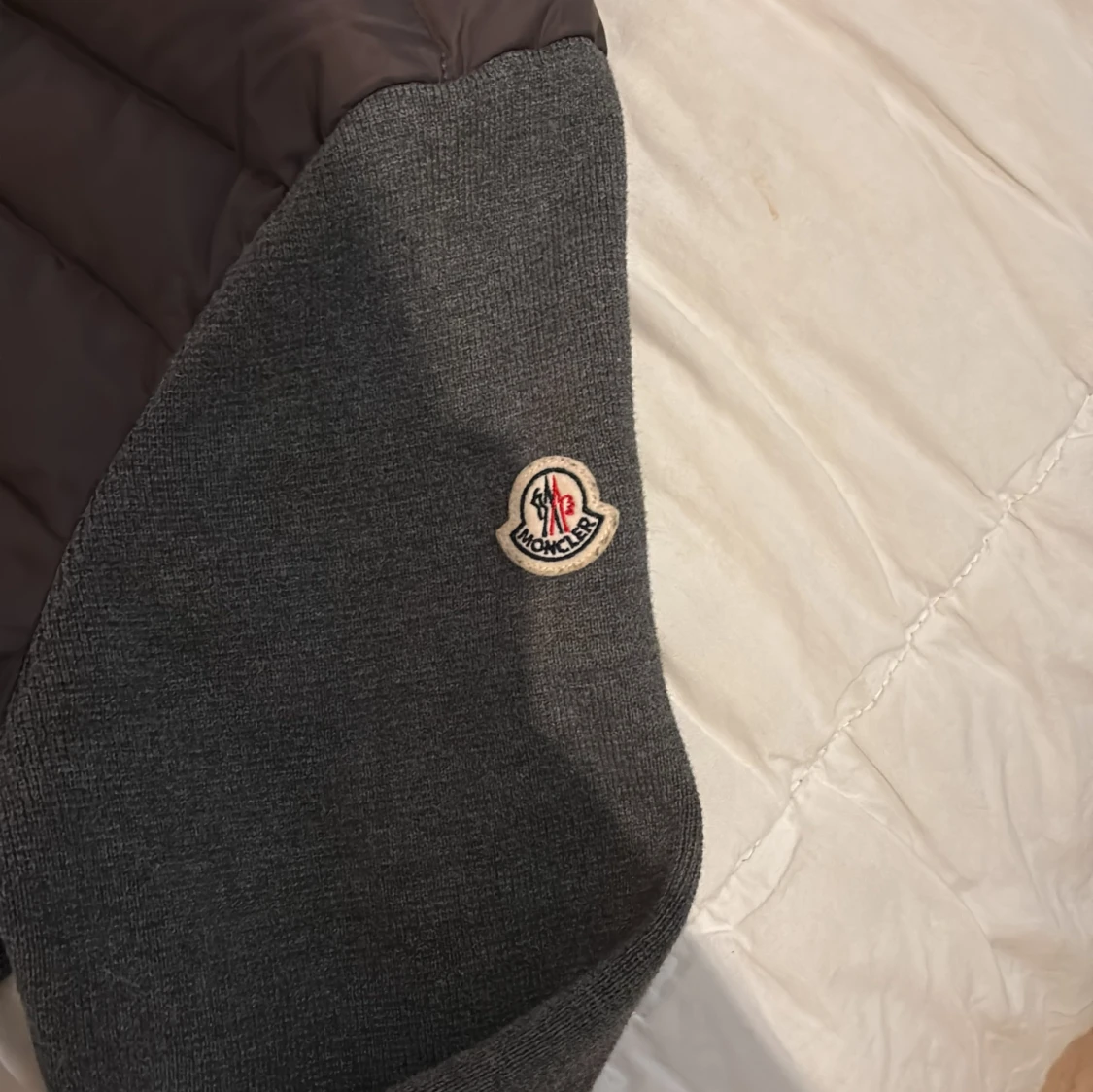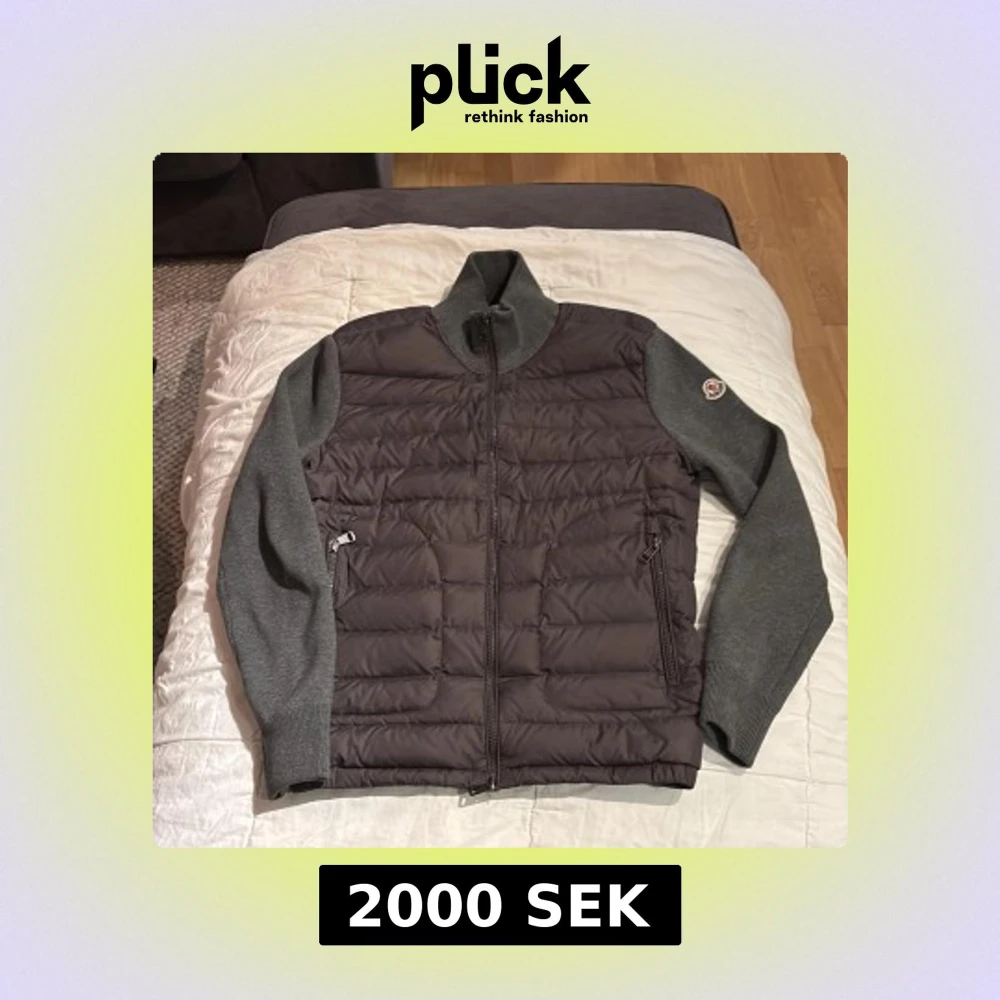 Snygg grå jacka från Moncler med quiltad front och stickade ärmar. Jackan har en dragkedja framtill och ribbade muddar. Perfekt för kyligare dagar.