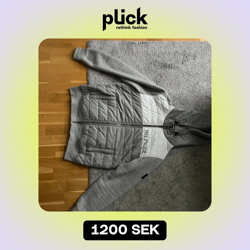 Säljer en snygg grå jacka från Tommy Hilfiger i storlek S. Jackan har en quiltad design på framsidan med dragkedja och en huva. Perfekt för höst och vår, med en stilren look som passar till det mesta. Den är i mycket bra skick och endast använd ett fåtal gånger.