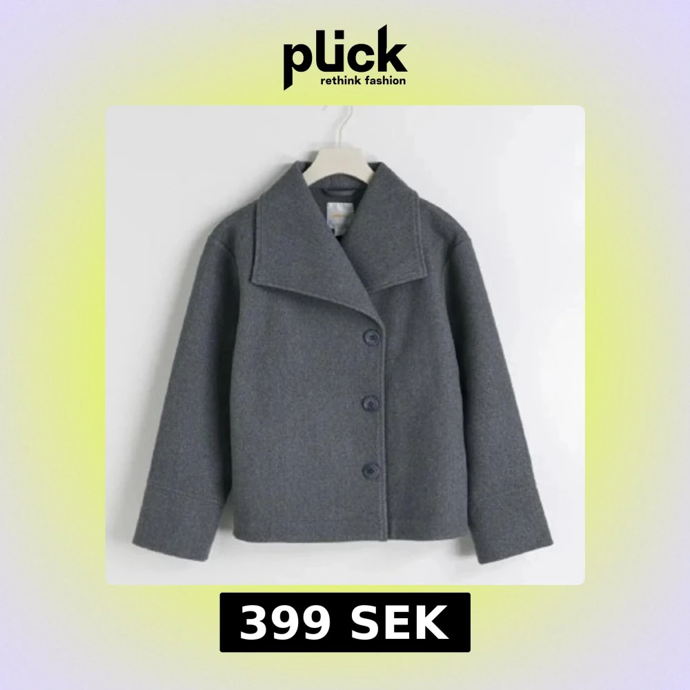 Stilren grå kappa och tre stora knappar framtill. Jackan har en boxig passform och är tillverkad i ett mjukt ullmaterial som ger en klassisk och clean look. Perfekt för dig som gillar minimalistisk stil. Finns så man får en extra knapp till